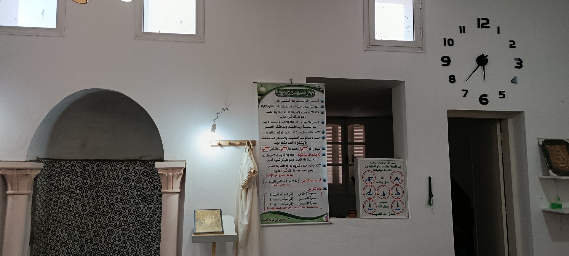 بين الأذان والإقامة ، وبعد كل صلاة ، يتم عرض الأذكار والأدعية. كما يعرض حديث للنبي "صلى الله عليه وسلم" كل 5 دقائق