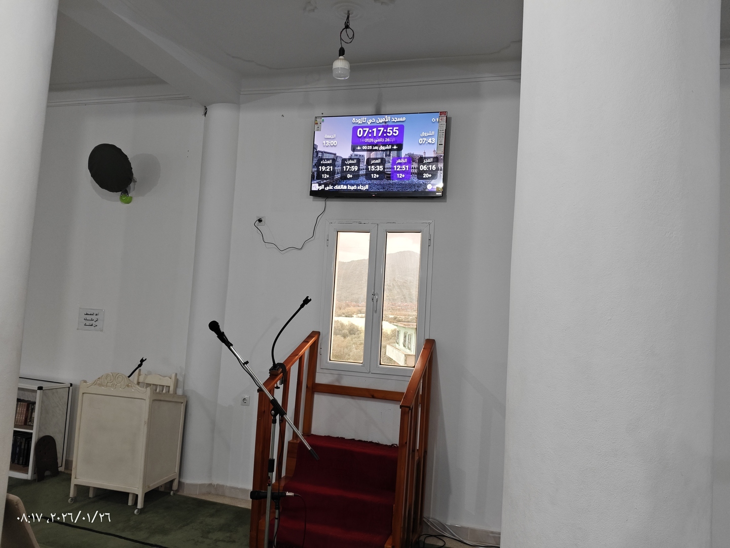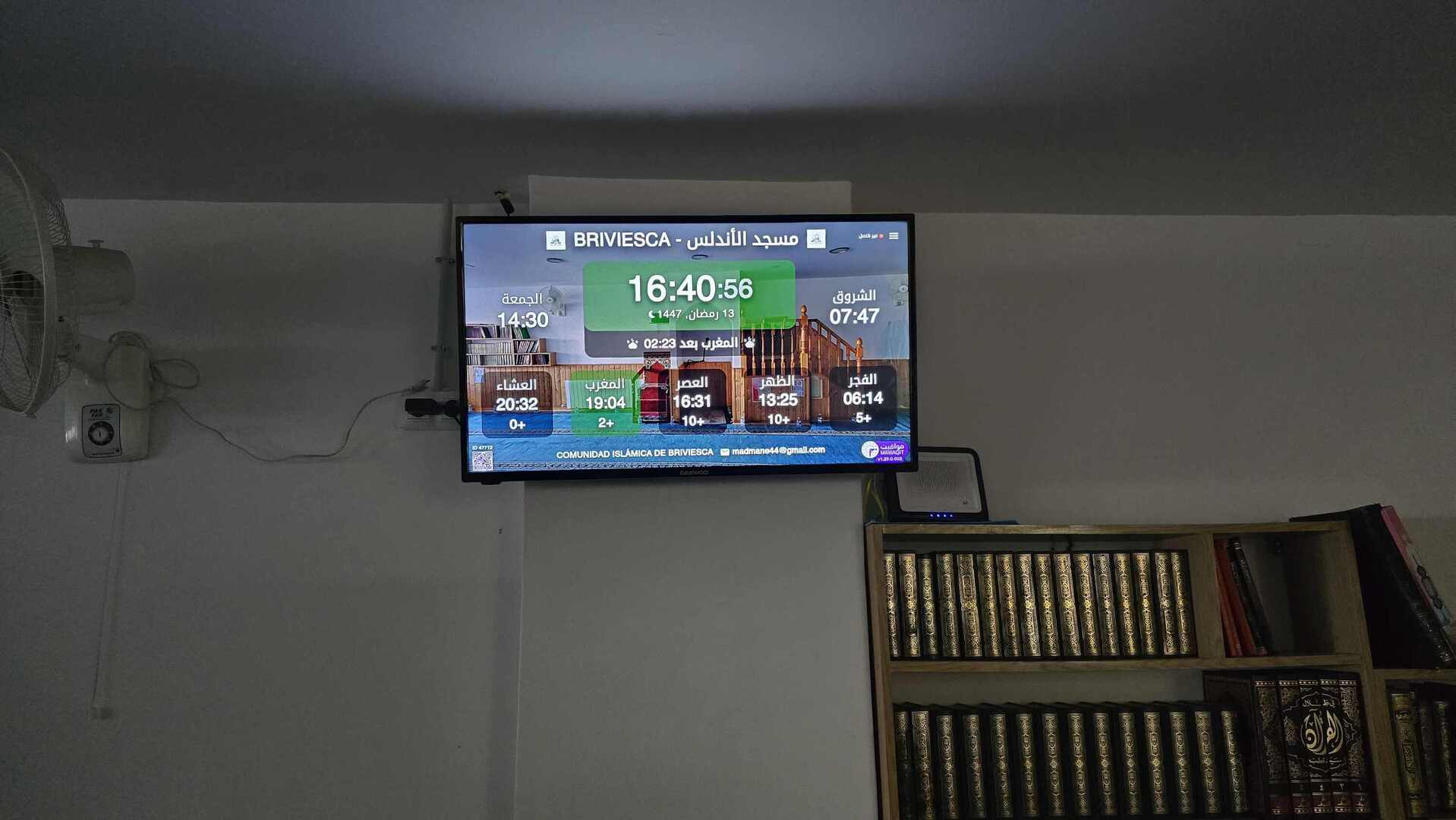 بين الأذان والإقامة ، وبعد كل صلاة ، يتم عرض الأذكار والأدعية. كما يعرض حديث للنبي "صلى الله عليه وسلم" كل 5 دقائق