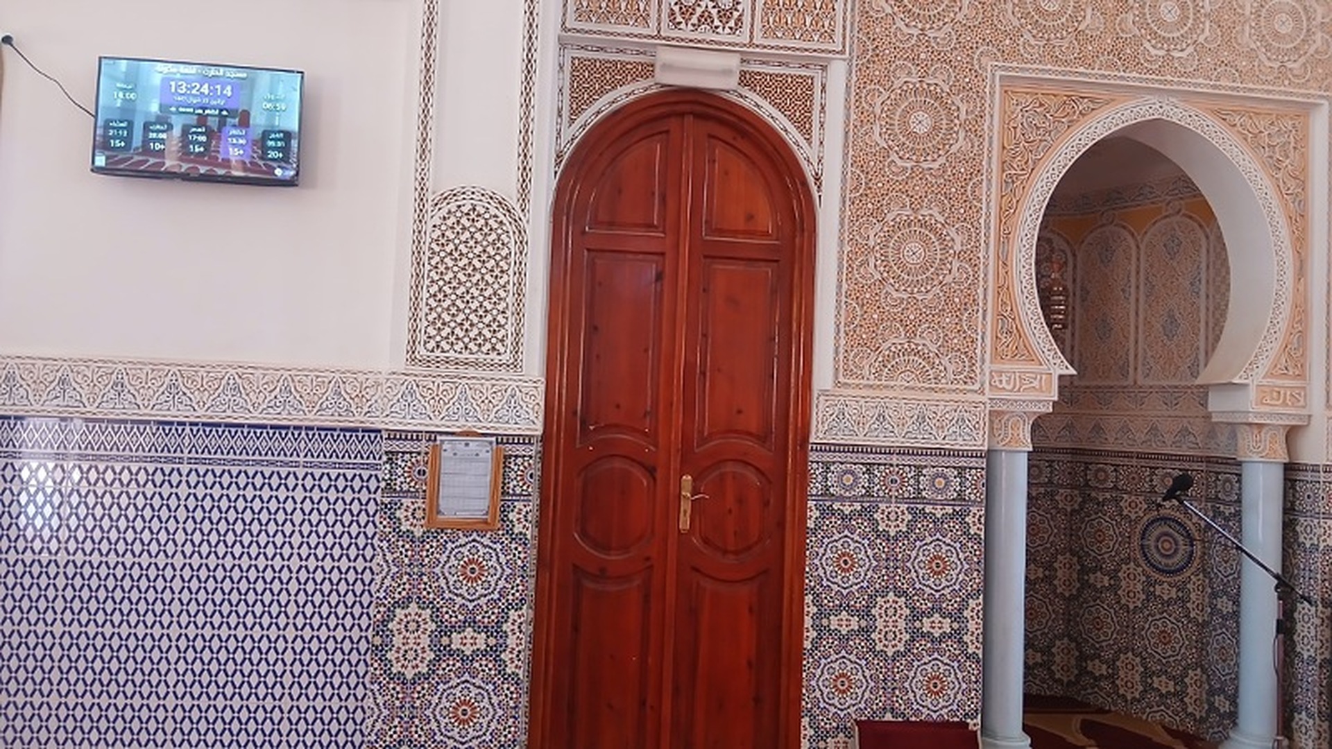 بين الأذان والإقامة ، وبعد كل صلاة ، يتم عرض الأذكار والأدعية. كما يعرض حديث للنبي "صلى الله عليه وسلم" كل 5 دقائق