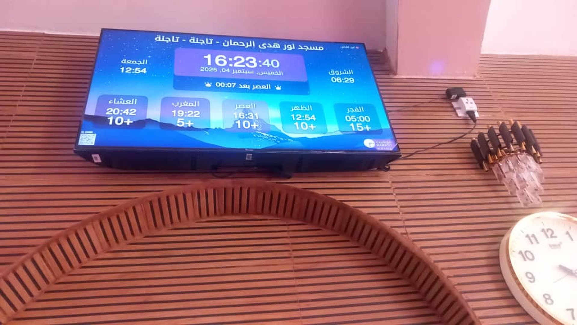 التواصل مع المسلمين بمسجدكم من خلال الإعلانات و رسائل فلاش ،  داخل المسجد وفي كل مكان آخر عبر تطبيق الجوال