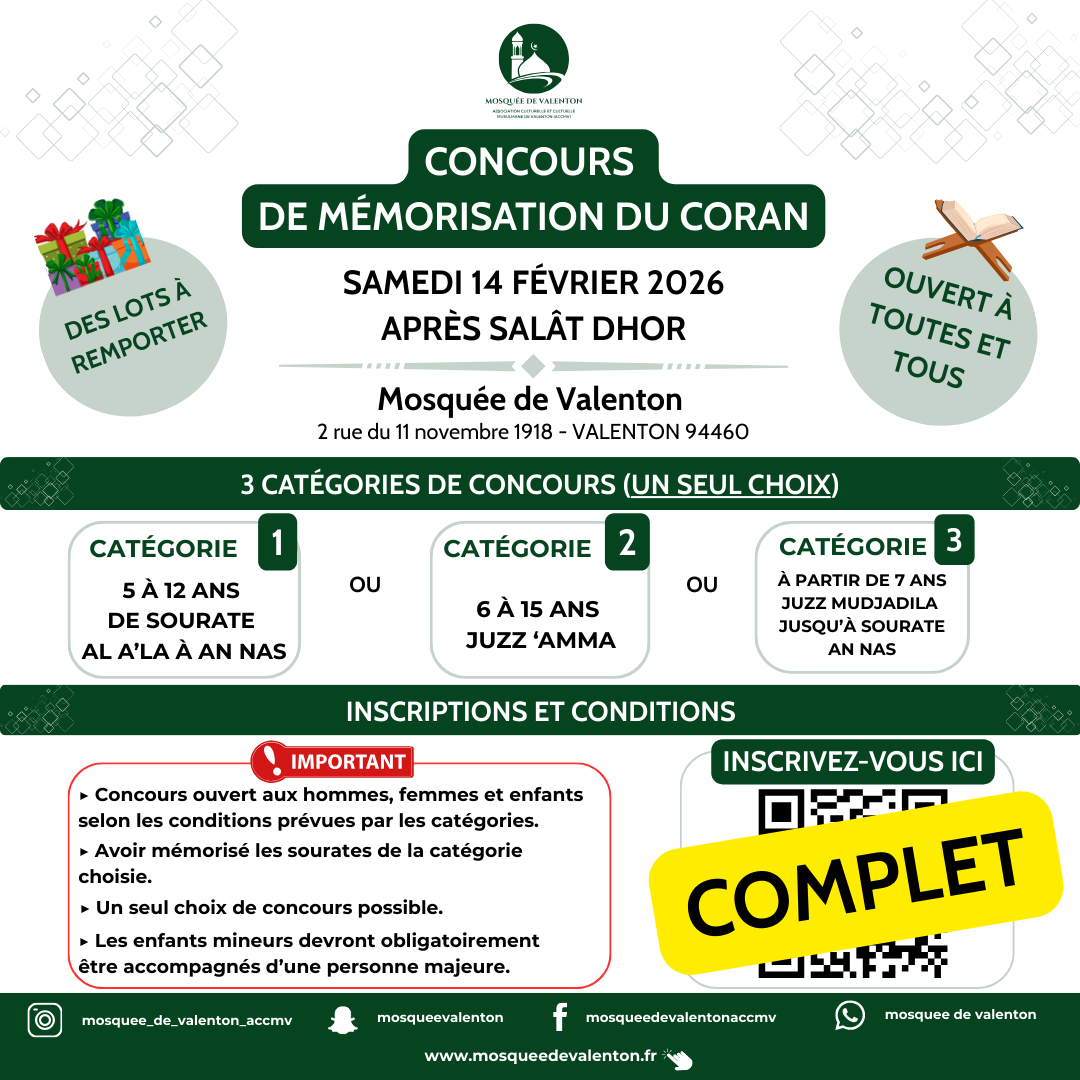 Ouverture 15 min avant la prière