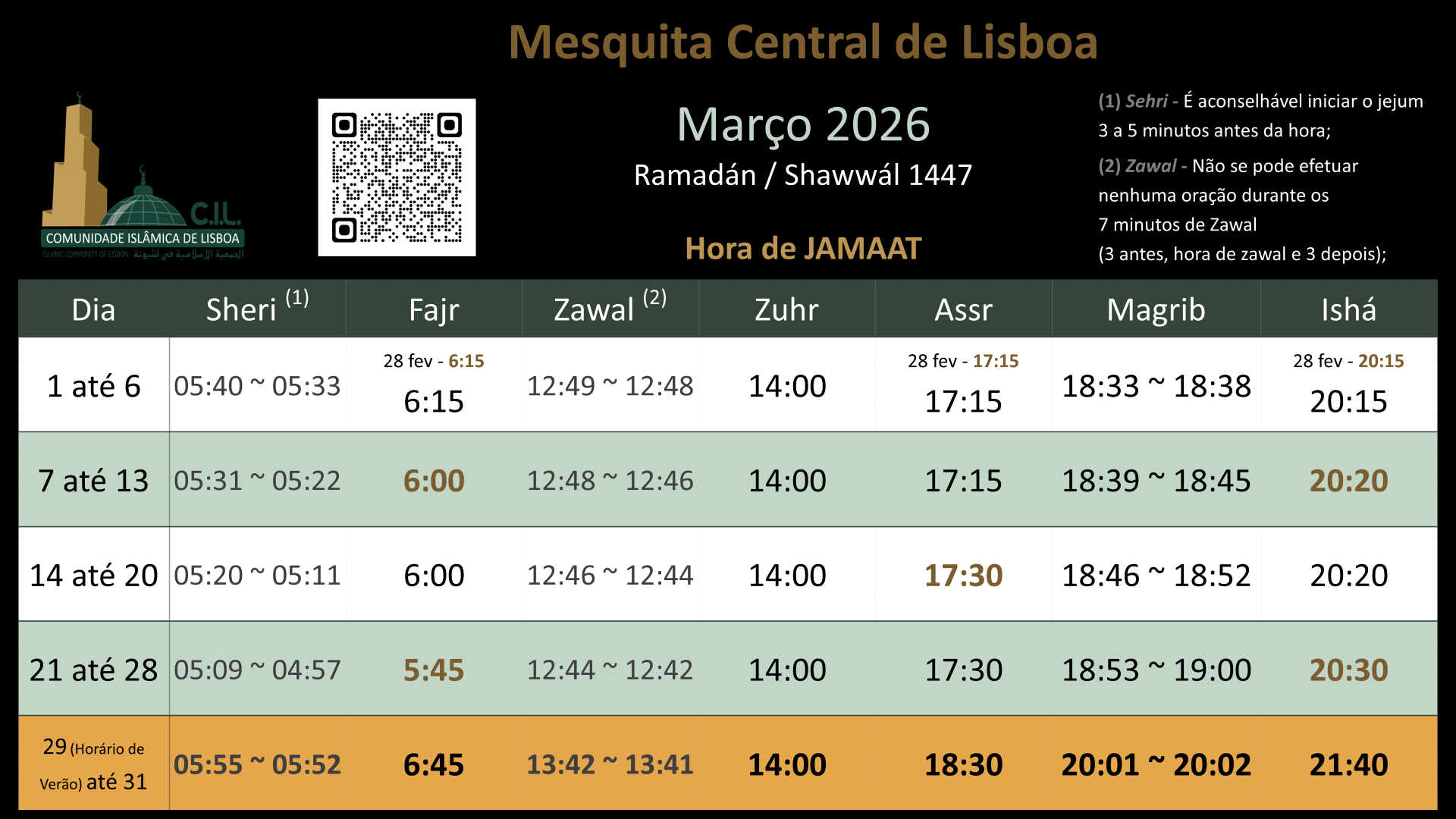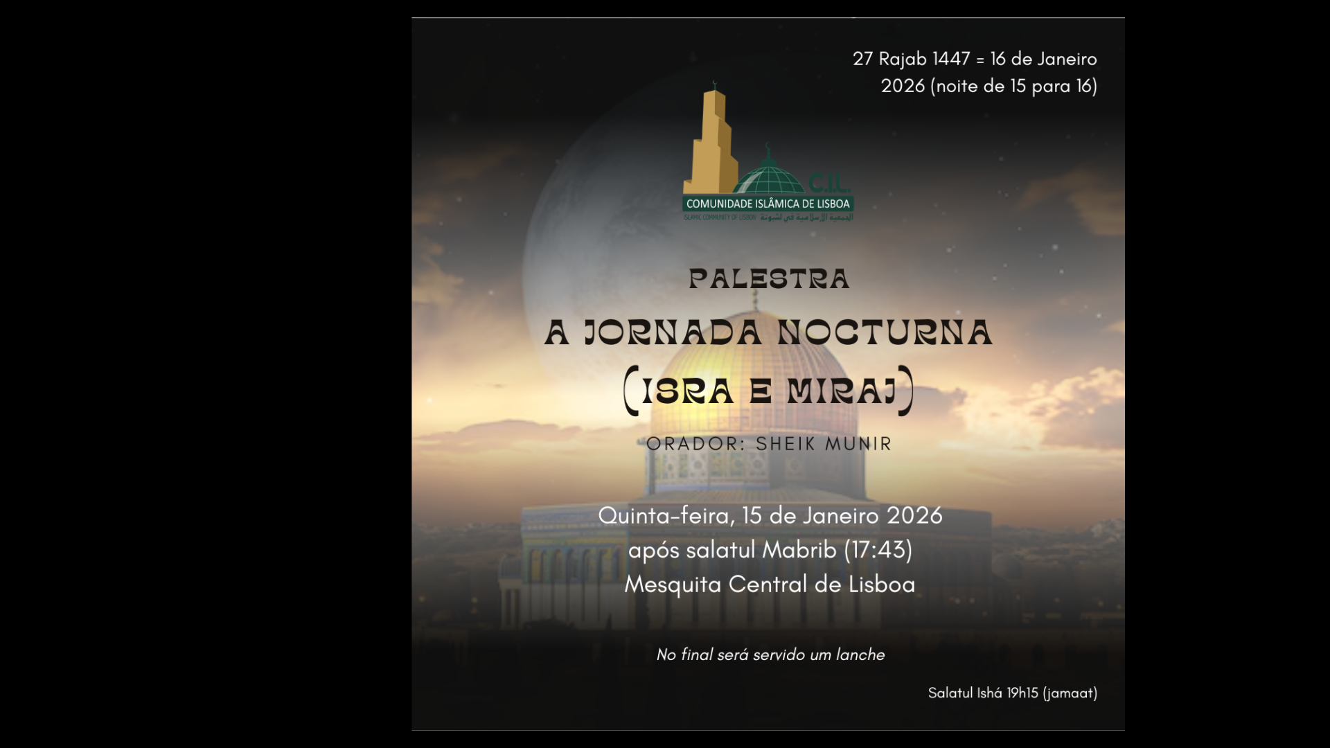 Secretaria, Sala de Culto (homens e senhoras), Madrassah, Salas de Aulas, Biblioteca, Sala de Conferência, Sala Funerária, Restaurante, Salão Eventos, Pavilhão Desportivo.