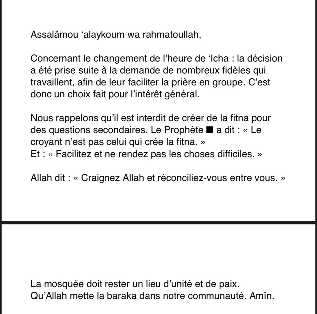 Ouvert 30 min avant et ferme 30 min après chaque prière