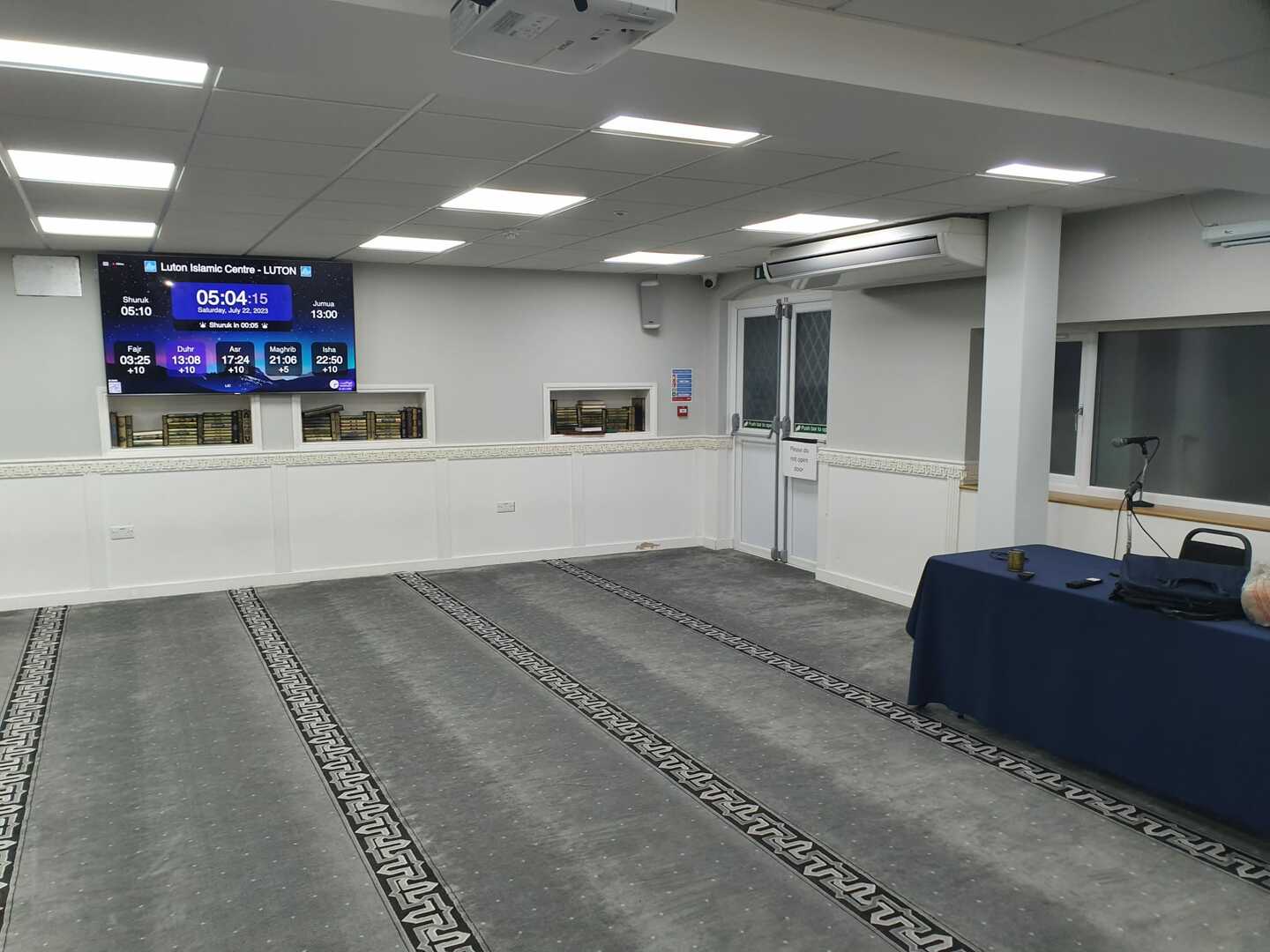 Between the athan and the iqama, and after each prayer, reminders and invocations are displayed. A Prophet's Hadith "May Allah's Prayer and Salvation Be to Him" is also displayed every 5 min