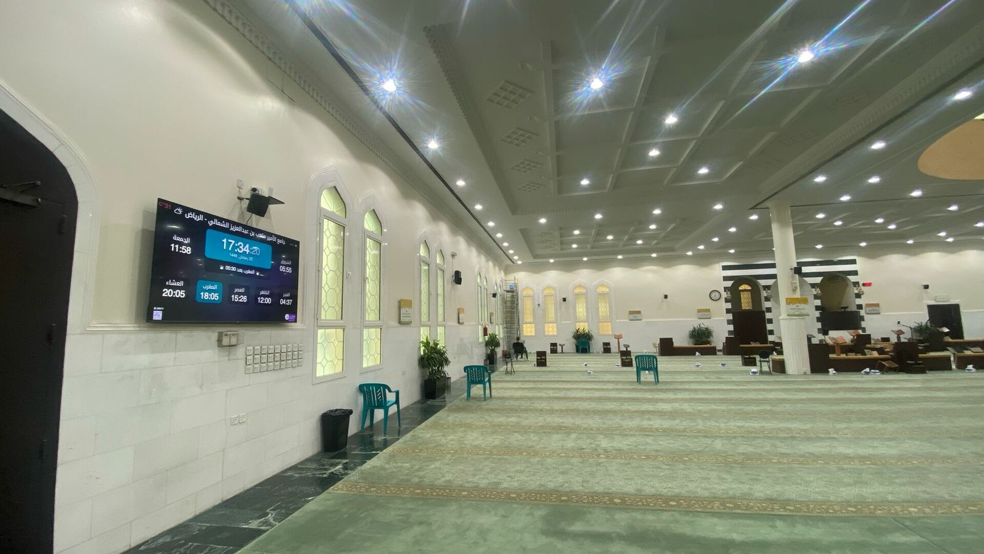 Between the athan and the iqama, and after each prayer, reminders and invocations are displayed. A Prophet's Hadith "May Allah's Prayer and Salvation Be to Him" is also displayed every 5 min