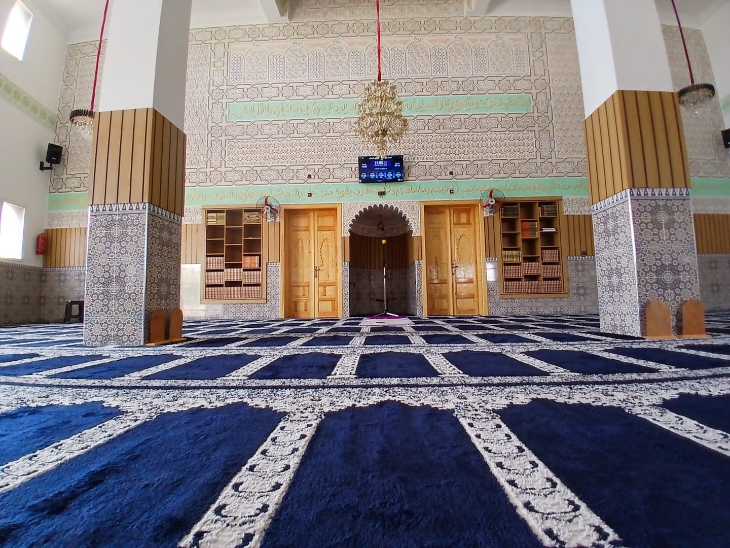 Between the athan and the iqama, and after each prayer, reminders and invocations are displayed. A Prophet's Hadith "May Allah's Prayer and Salvation Be to Him" is also displayed every 5 min