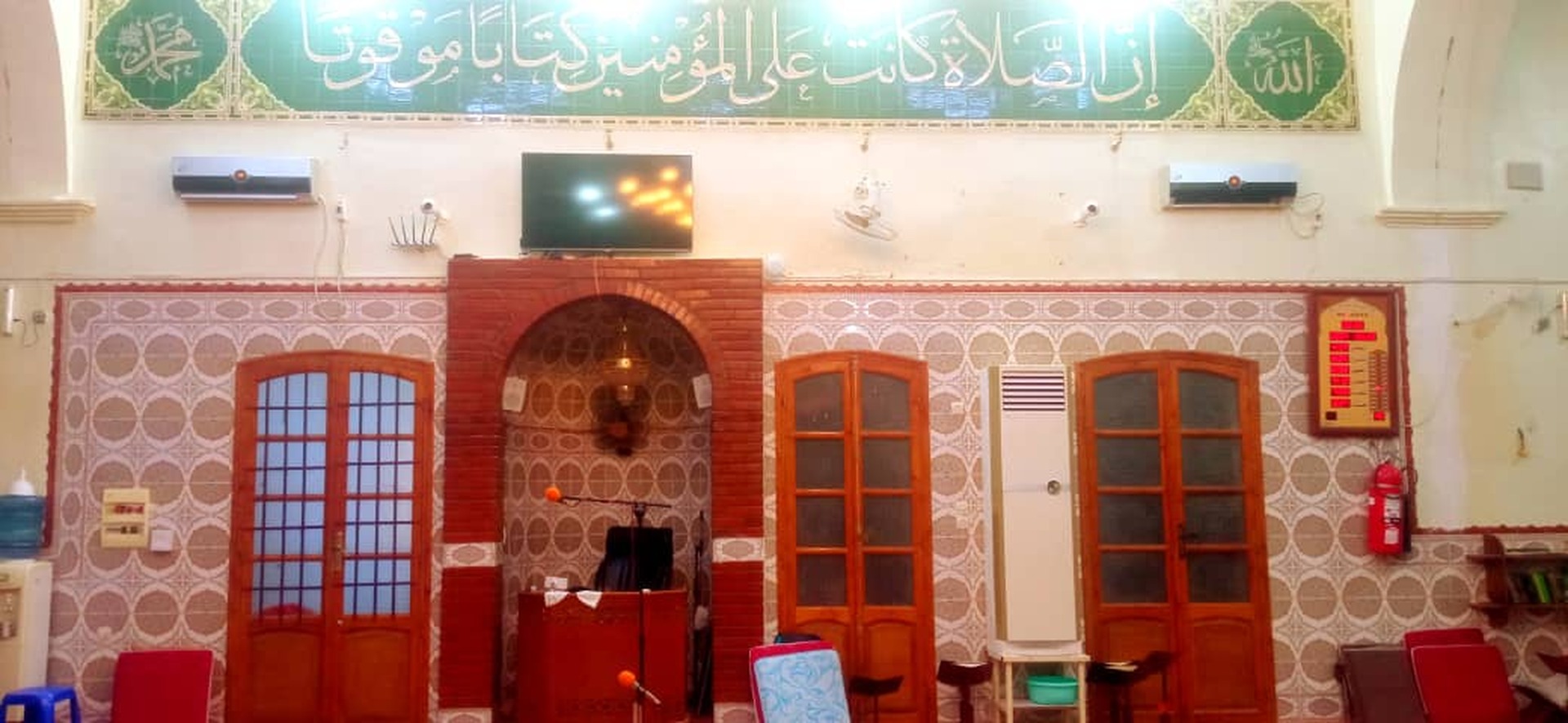 Between the athan and the iqama, and after each prayer, reminders and invocations are displayed. A Prophet's Hadith "May Allah's Prayer and Salvation Be to Him" is also displayed every 5 min