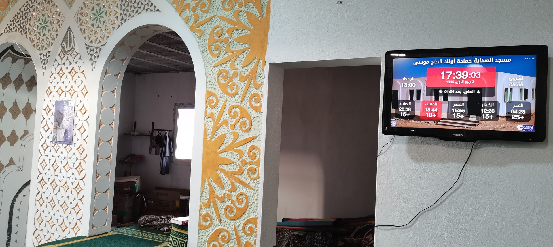 Between the athan and the iqama, and after each prayer, reminders and invocations are displayed. A Prophet's Hadith "May Allah's Prayer and Salvation Be to Him" is also displayed every 5 min