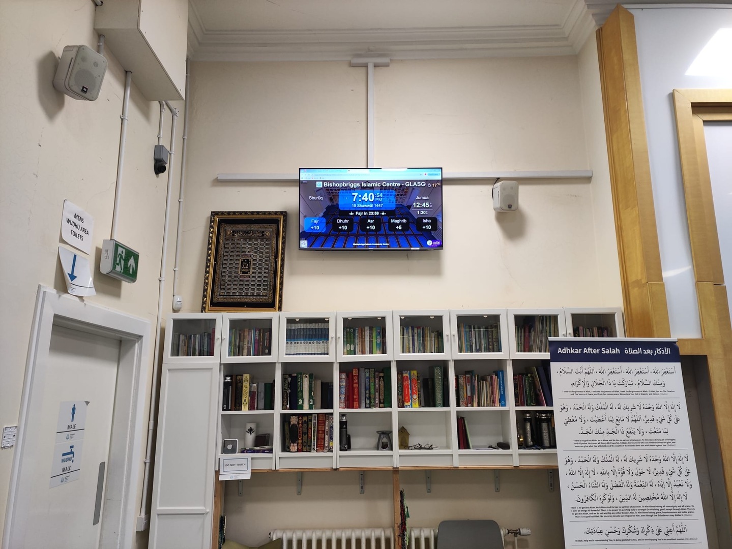 Zwischen dem Athan und der Iqama sowie nach jedem Gebet werden Erinnerungen und Aufforderungen angezeigt. Ein Hadith des Propheten "Allahs Gebet und Heil seien auf ihm" wird ebenfalls alle 5 Minuten angezeigt