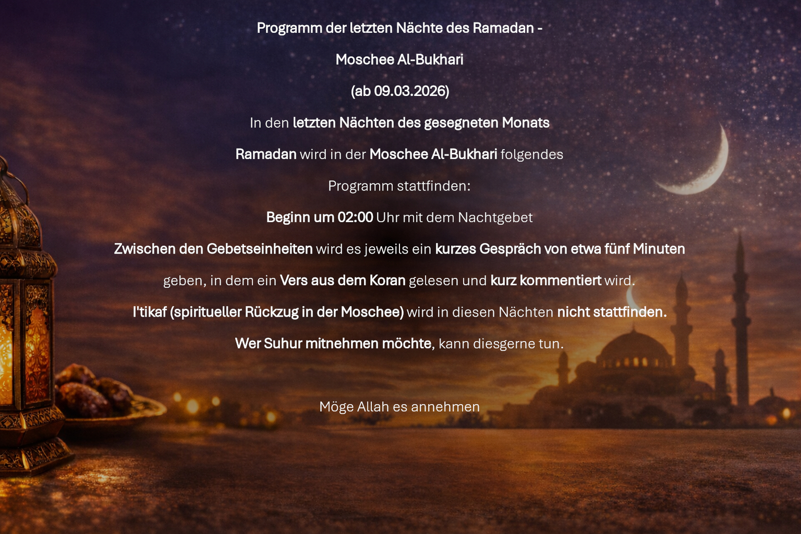 Programm der letzten Nächte des Ramadans