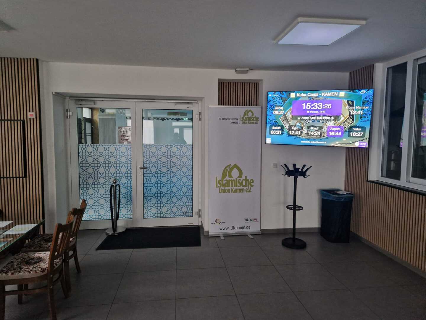 Between the athan and the iqama, and after each prayer, reminders and invocations are displayed. A Prophet's Hadith "May Allah's Prayer and Salvation Be to Him" is also displayed every 5 min