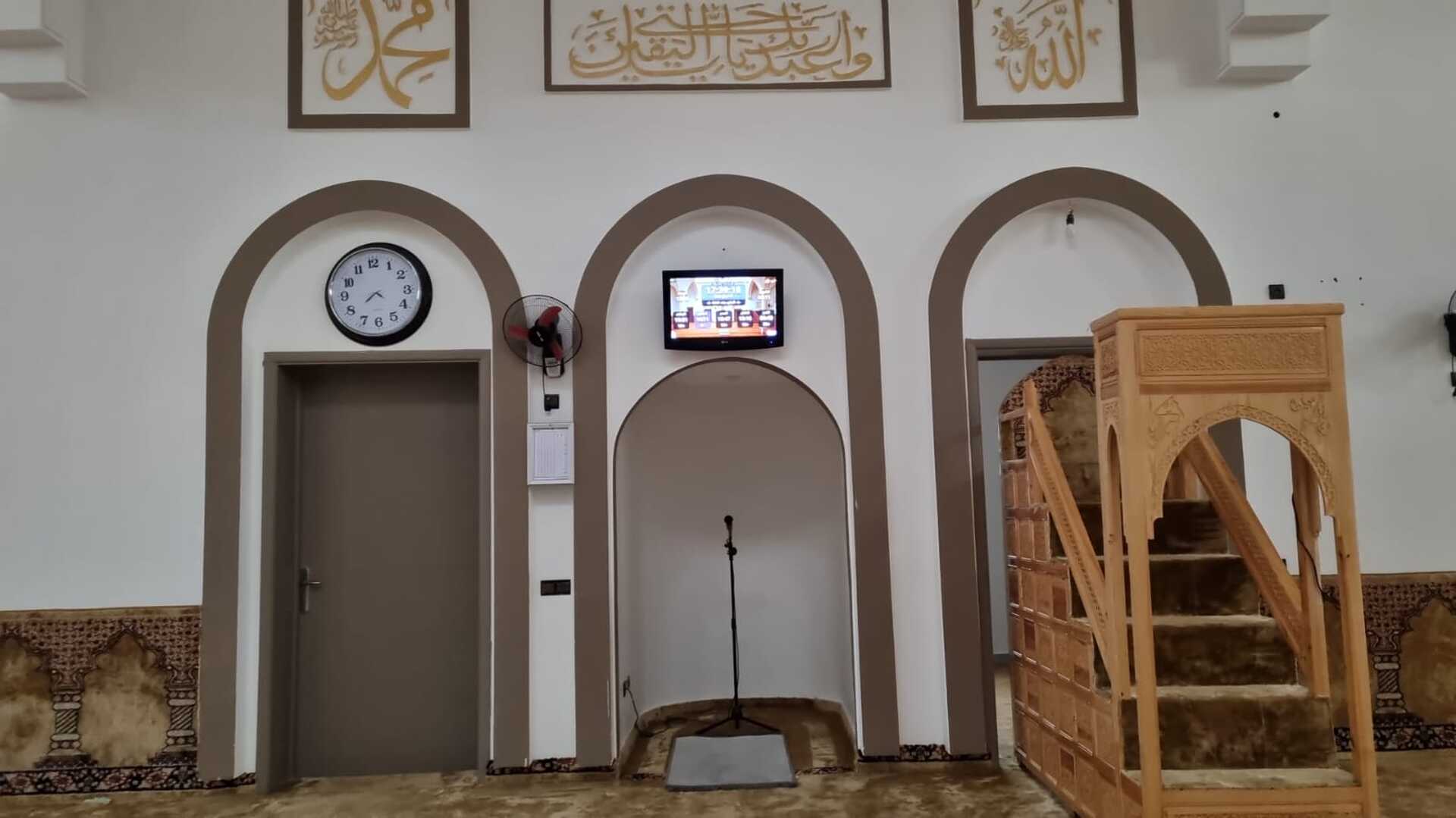 Between the athan and the iqama, and after each prayer, reminders and invocations are displayed. A Prophet's Hadith "May Allah's Prayer and Salvation Be to Him" is also displayed every 5 min