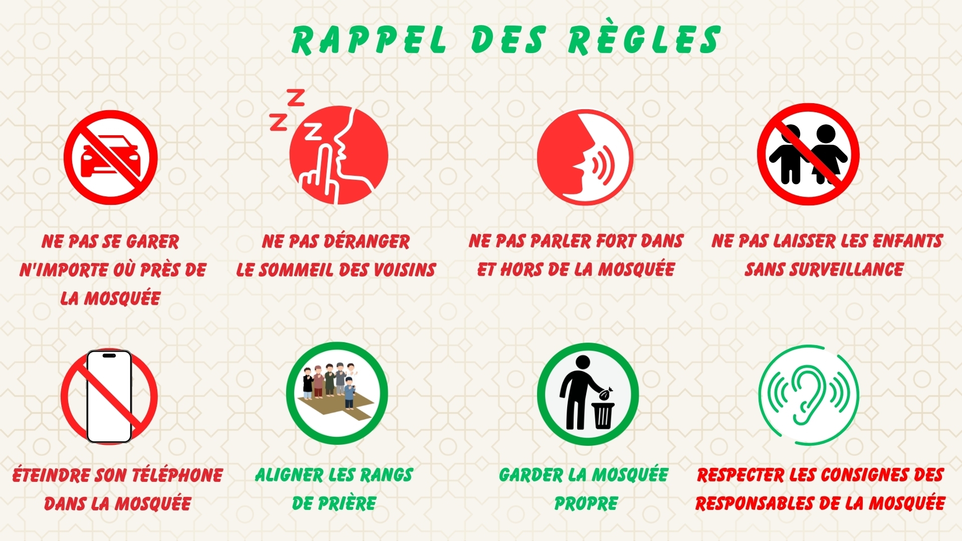 Ouverture 30min avant et fermeture 20min après la prière