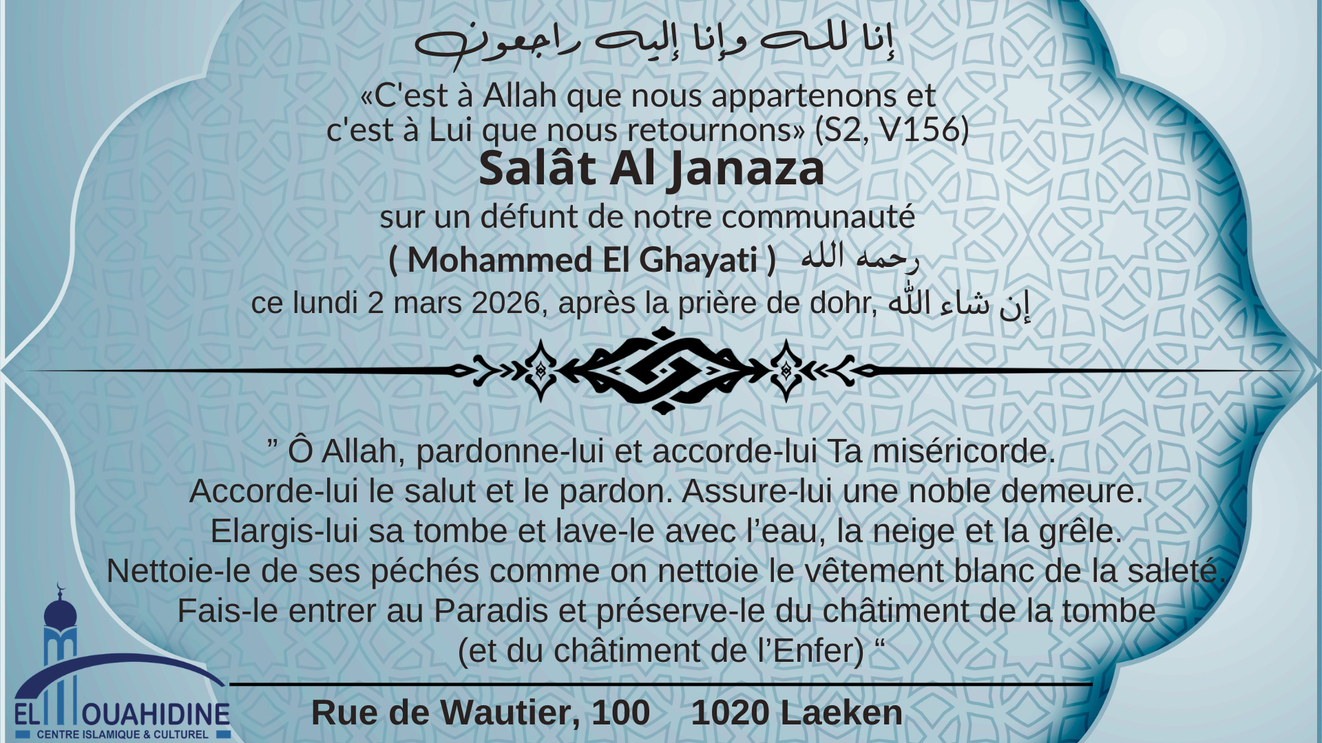 اللّهُـمَّ رَبَّ هَذِهِ الدّعْـوَةِ التّـامَّة وَالصّلاةِ القَـائِمَة آتِ محَـمَّداً الوَسيـلةَ وَالْفَضـيلَة وَابْعَـثْه مَقـامـاً مَحـموداً الَّذي وَعَـدْتَه