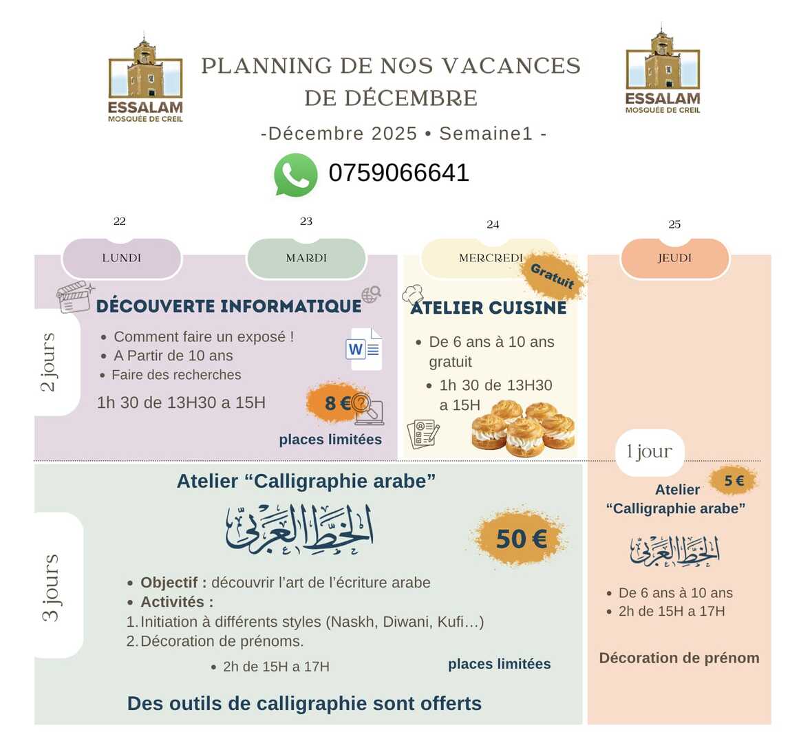 cours sur la thématique de la croyance. tous les samedis entre le Maghreb et le icha sur l'épître les trois fondements