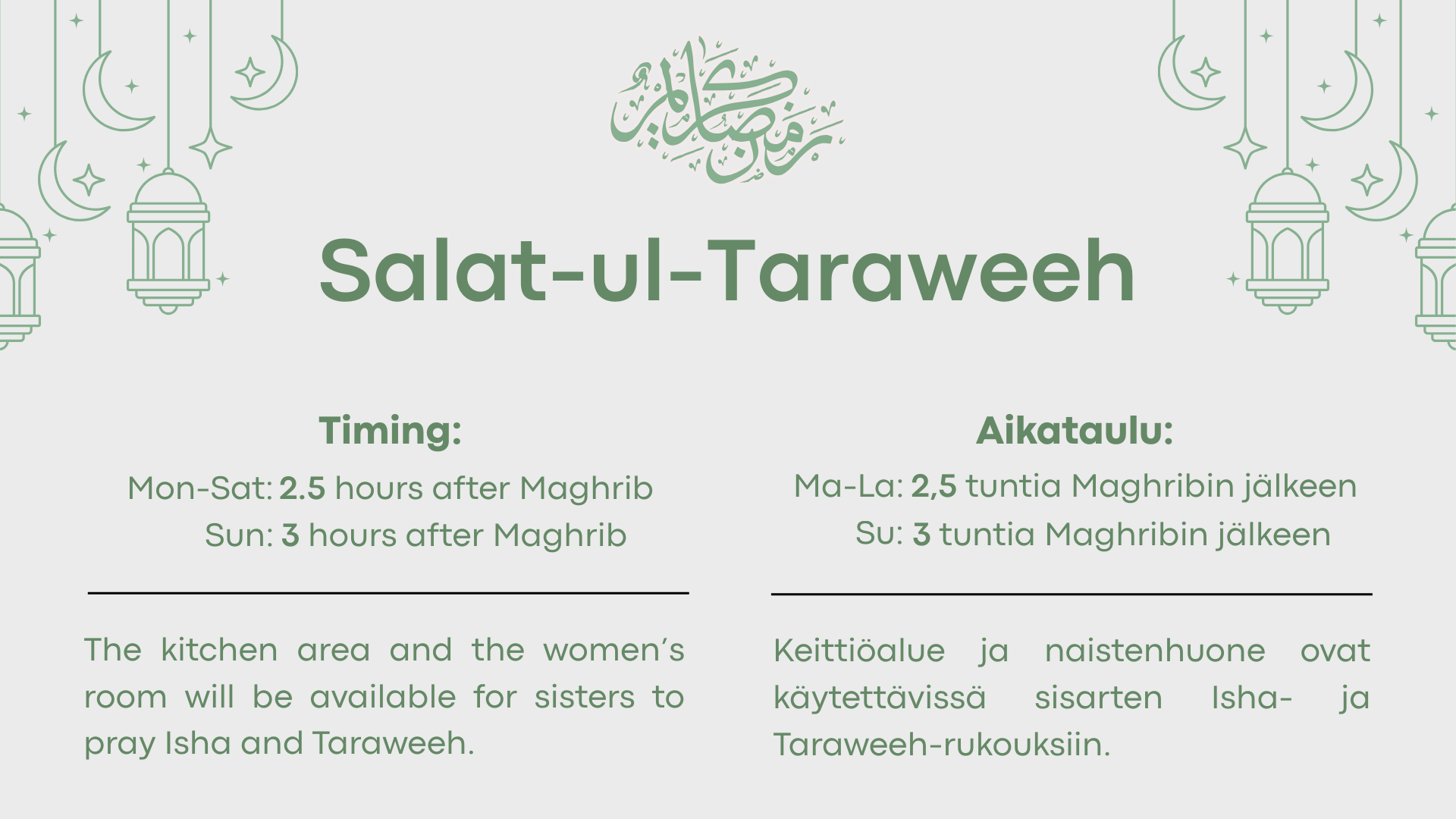 Kindly put your phone on silent when inside the masjid. Laittakaa puhelimet äänettömälle ollessanne masjidissa.