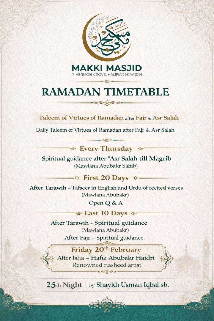 Makki Masjid - Download The 'MAWAQIT' App For Live Timetable On Your Phone.