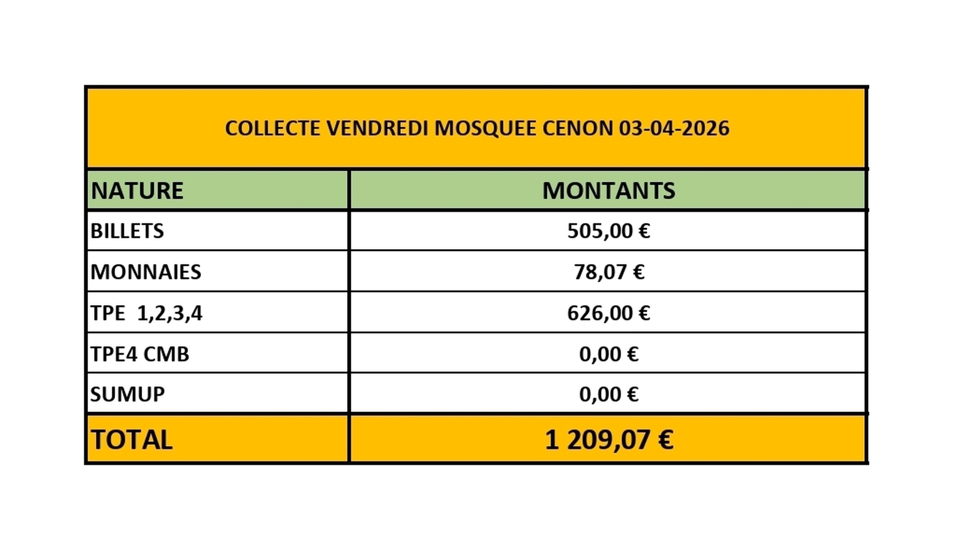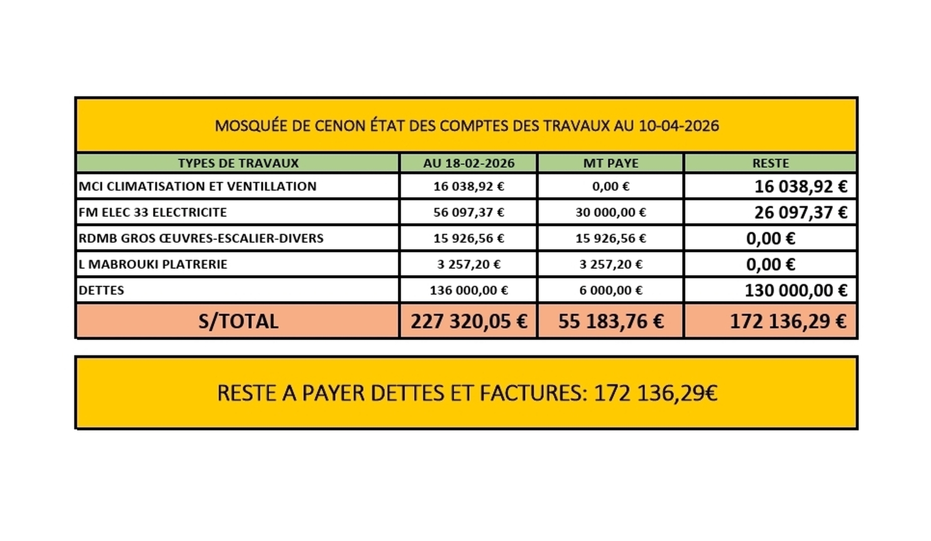 Ouverture 30 minute avant les prières et fermeture 20 minutes après