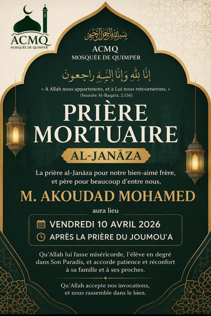 Nous avons la tristesse de vous annoncer le décès de notre bien-aimé, Akoudad Mohamed un ancien de la mosquée.