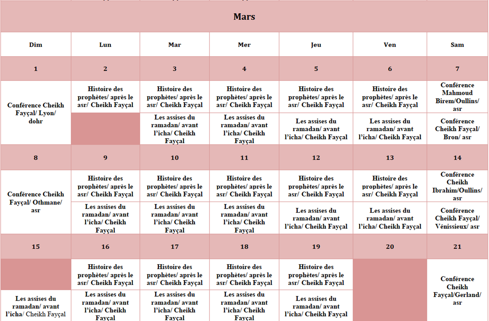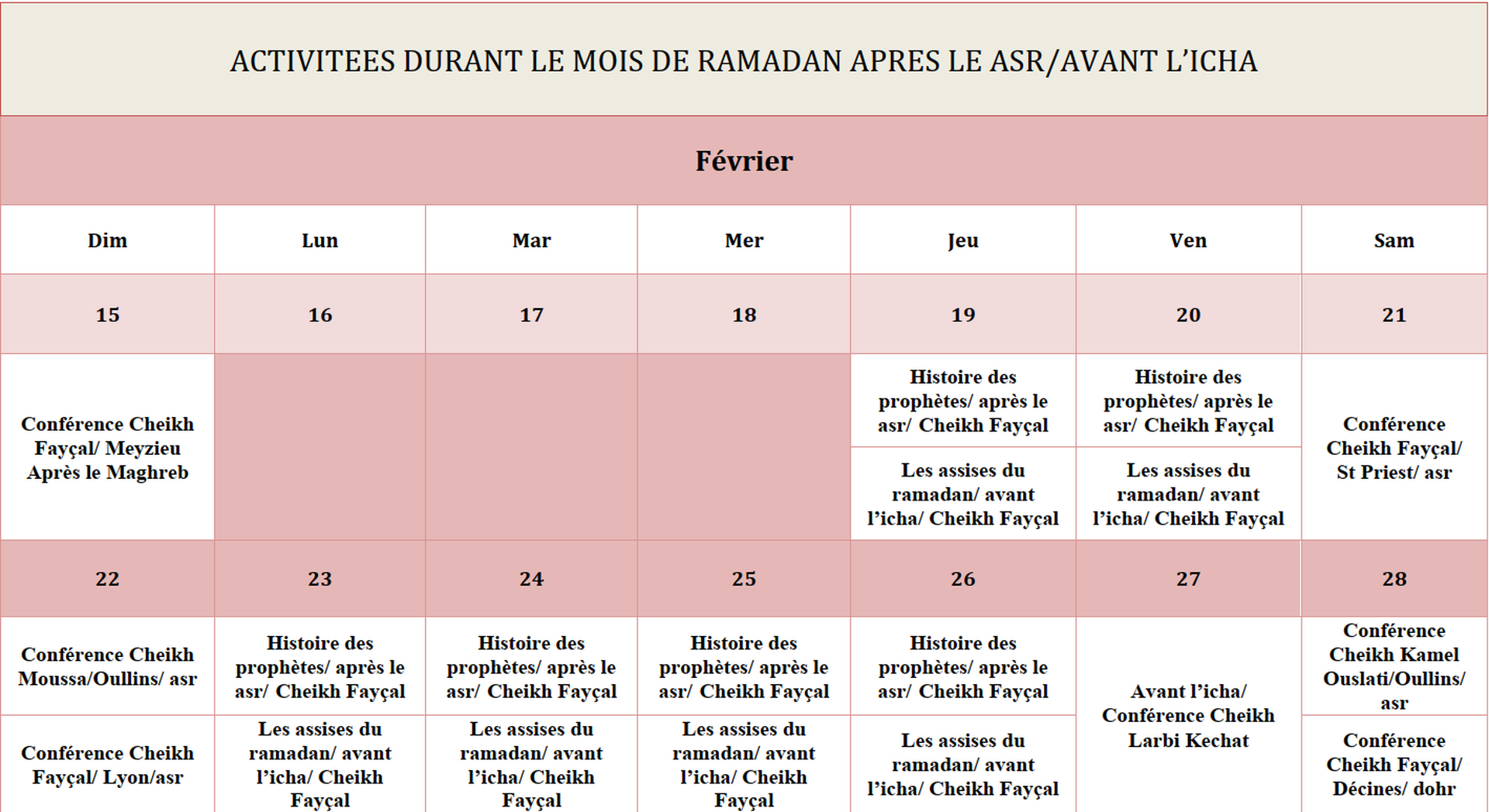 Conférence pendant le ramadan