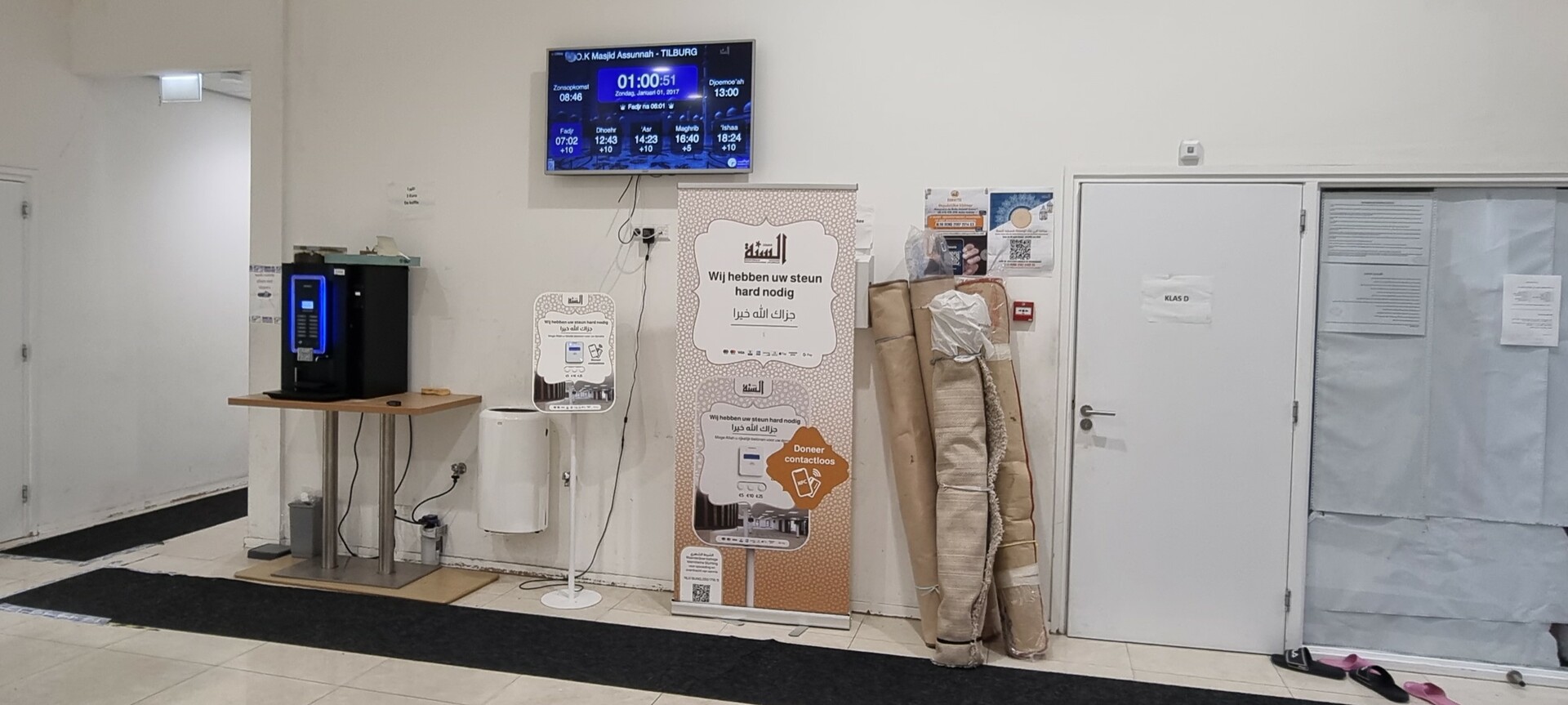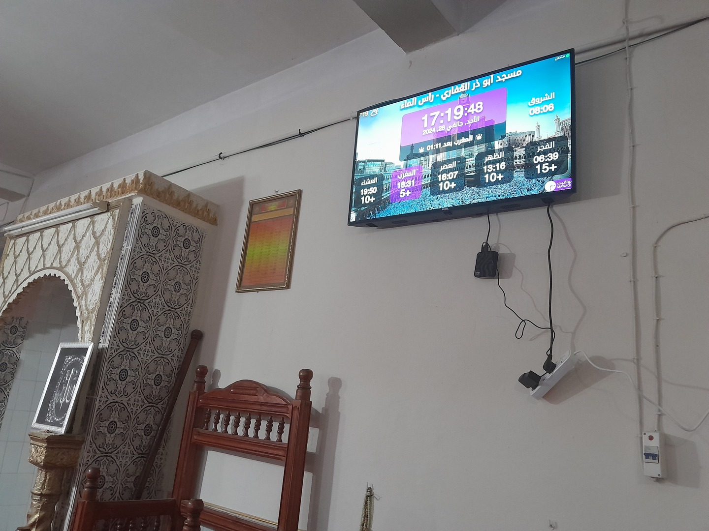 Between the athan and the iqama, and after each prayer, reminders and invocations are displayed. A Prophet's Hadith "May Allah's Prayer and Salvation Be to Him" is also displayed every 5 min