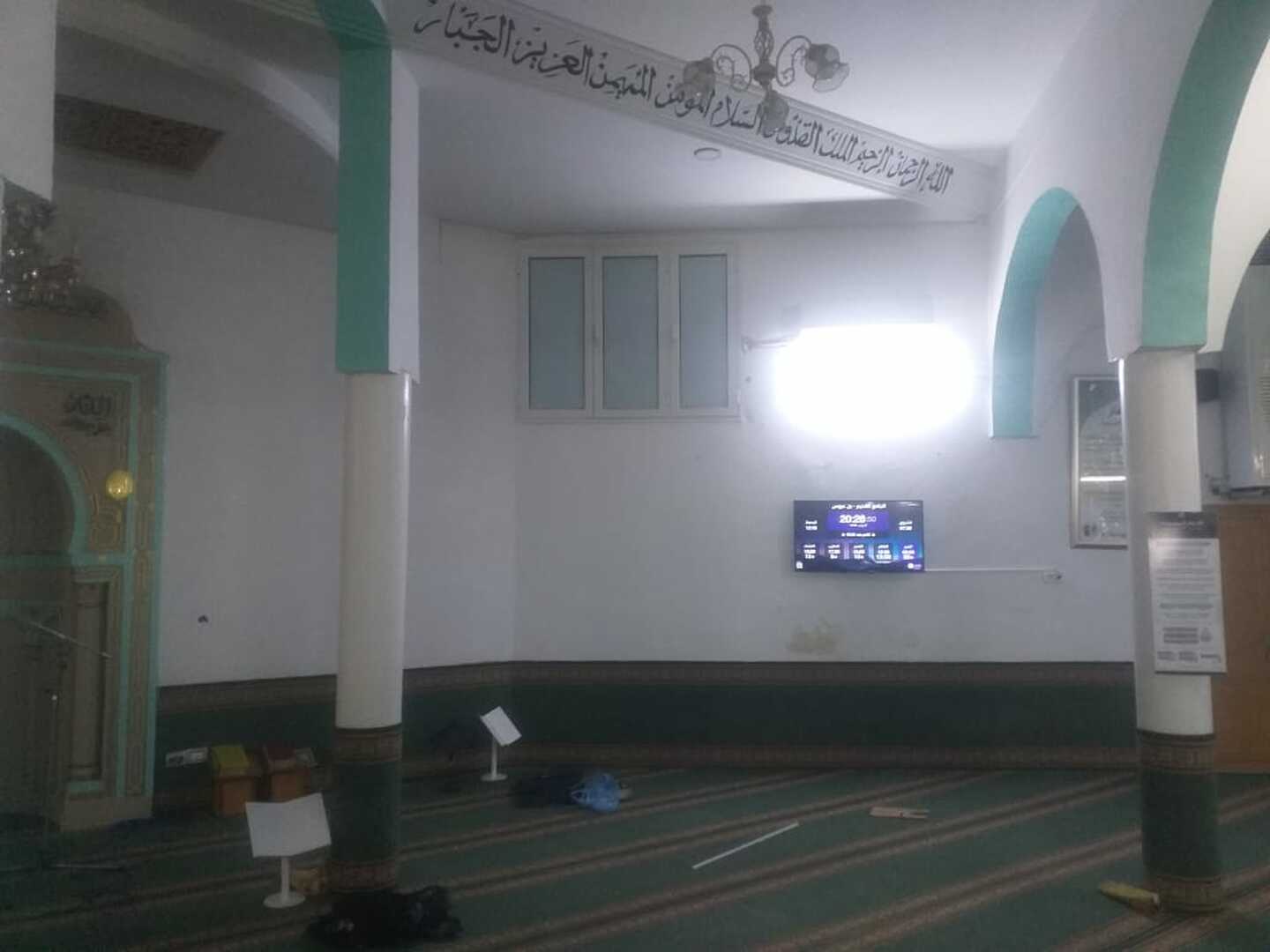 Between the athan and the iqama, and after each prayer, reminders and invocations are displayed. A Prophet's Hadith "May Allah's Prayer and Salvation Be to Him" is also displayed every 5 min