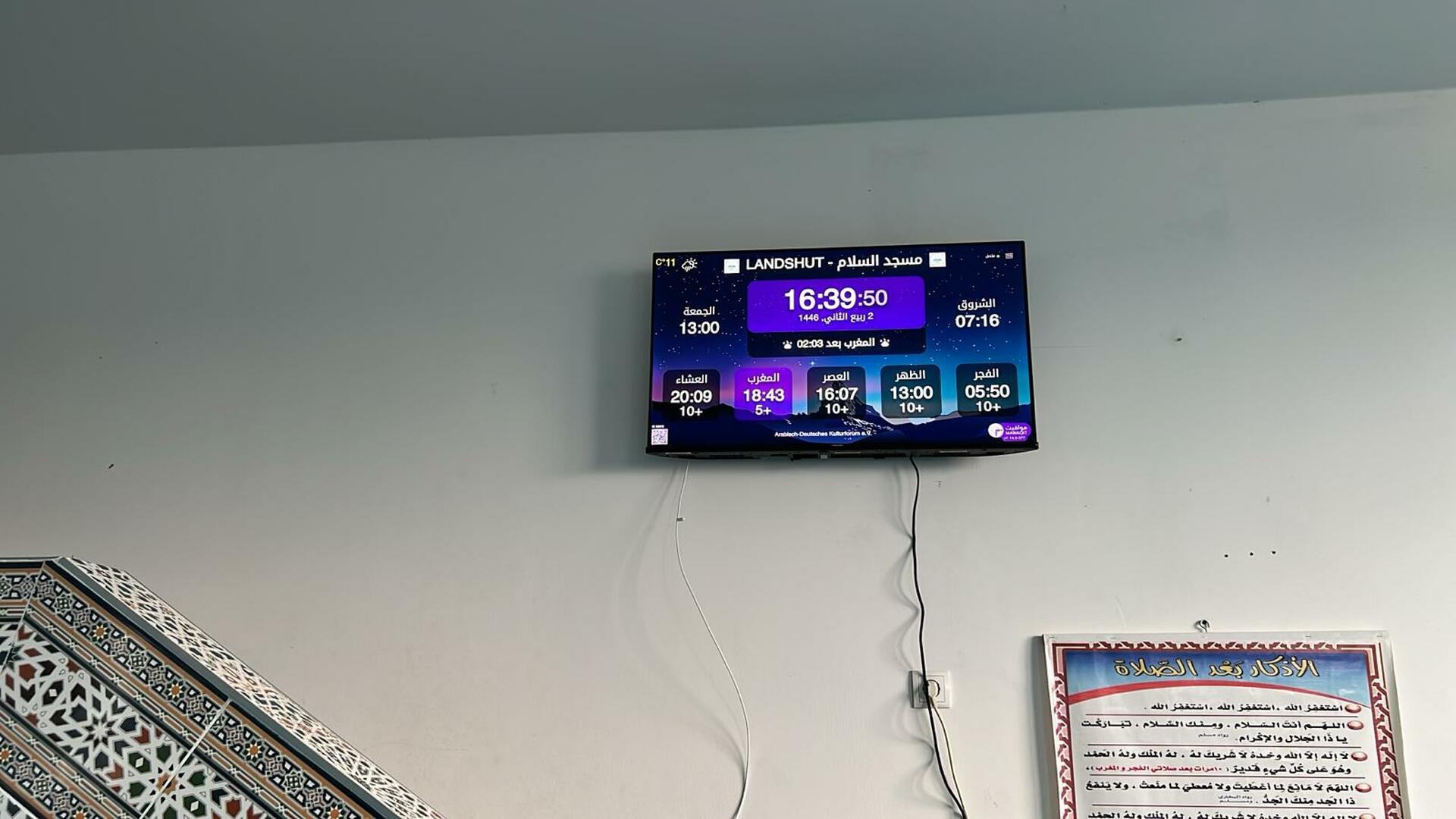 Between the athan and the iqama, and after each prayer, reminders and invocations are displayed. A Prophet's Hadith "May Allah's Prayer and Salvation Be to Him" is also displayed every 5 min