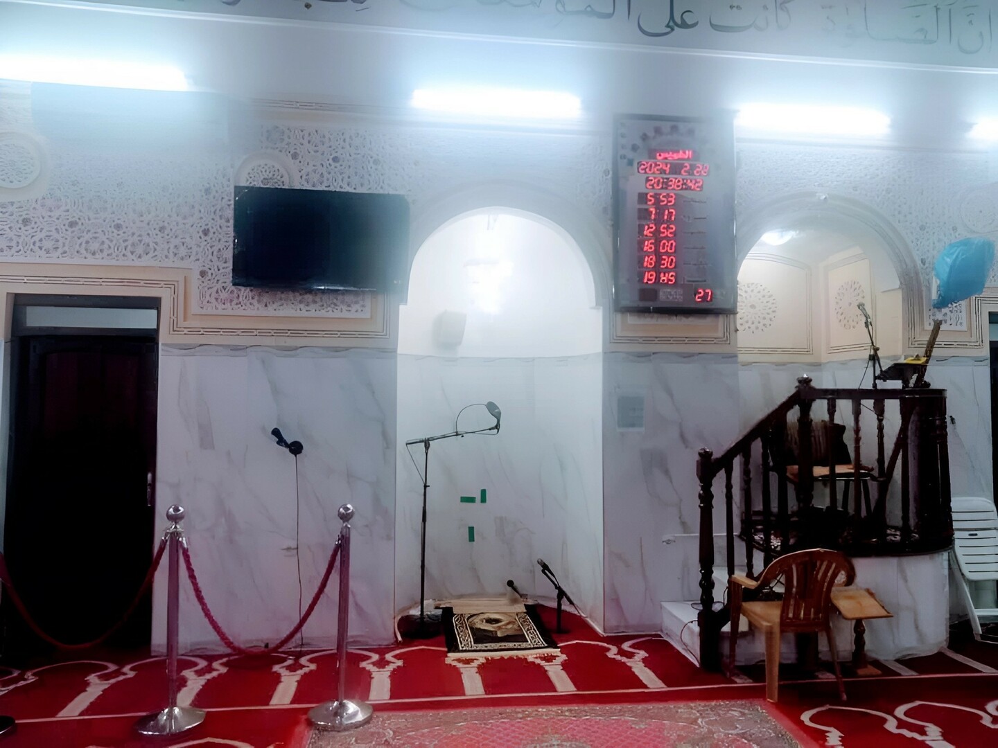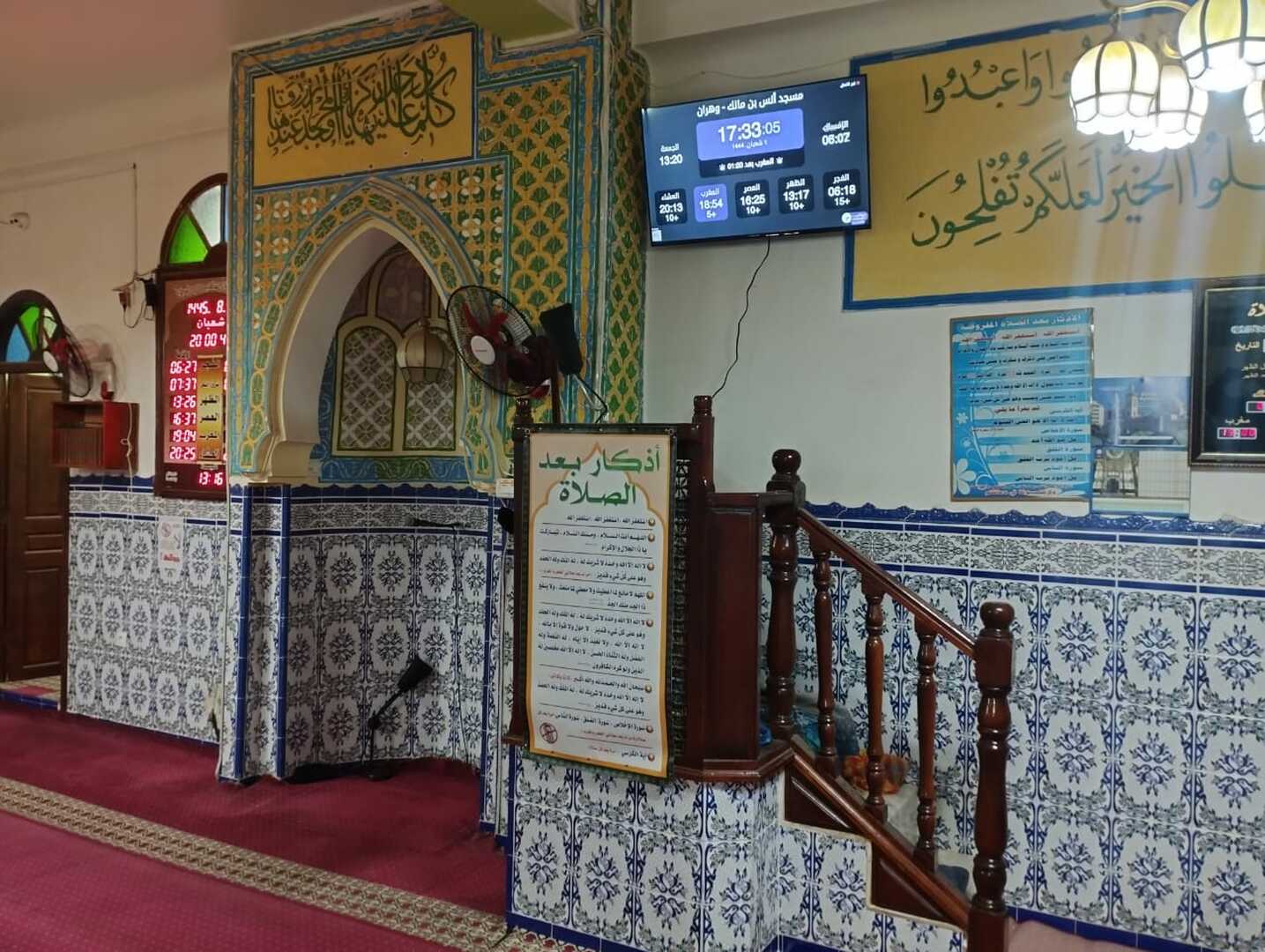 Between the athan and the iqama, and after each prayer, reminders and invocations are displayed. A Prophet's Hadith "May Allah's Prayer and Salvation Be to Him" is also displayed every 5 min