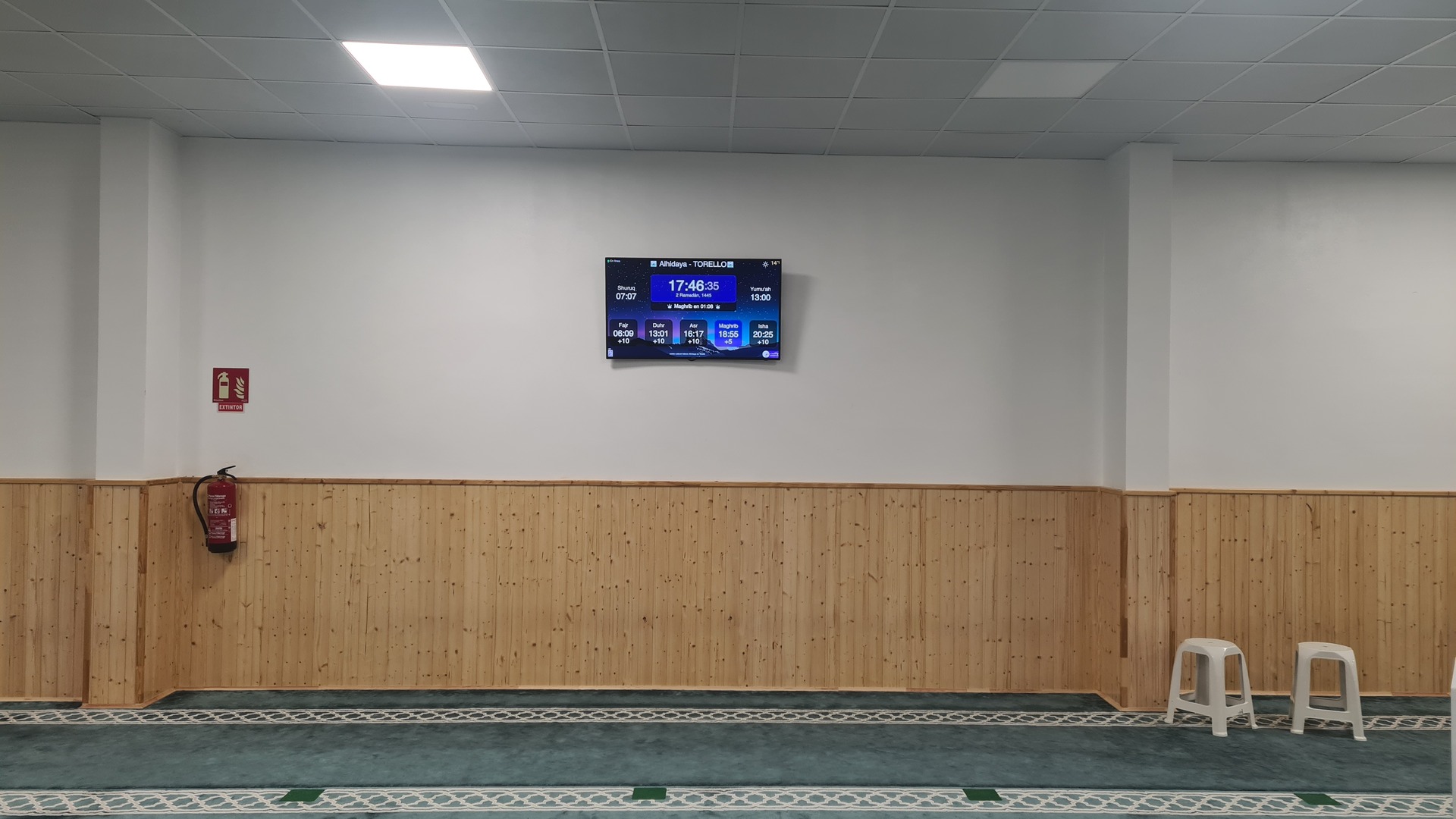 Between the athan and the iqama, and after each prayer, reminders and invocations are displayed. A Prophet's Hadith "May Allah's Prayer and Salvation Be to Him" is also displayed every 5 min