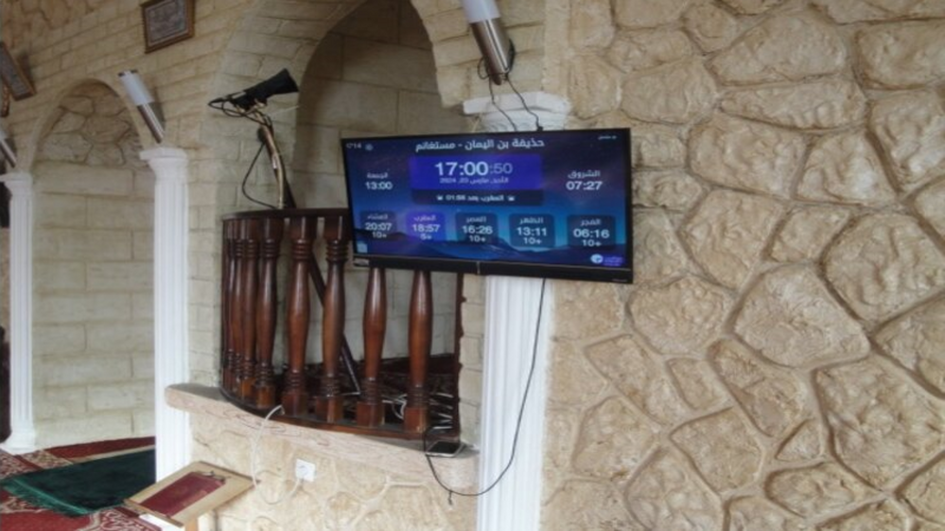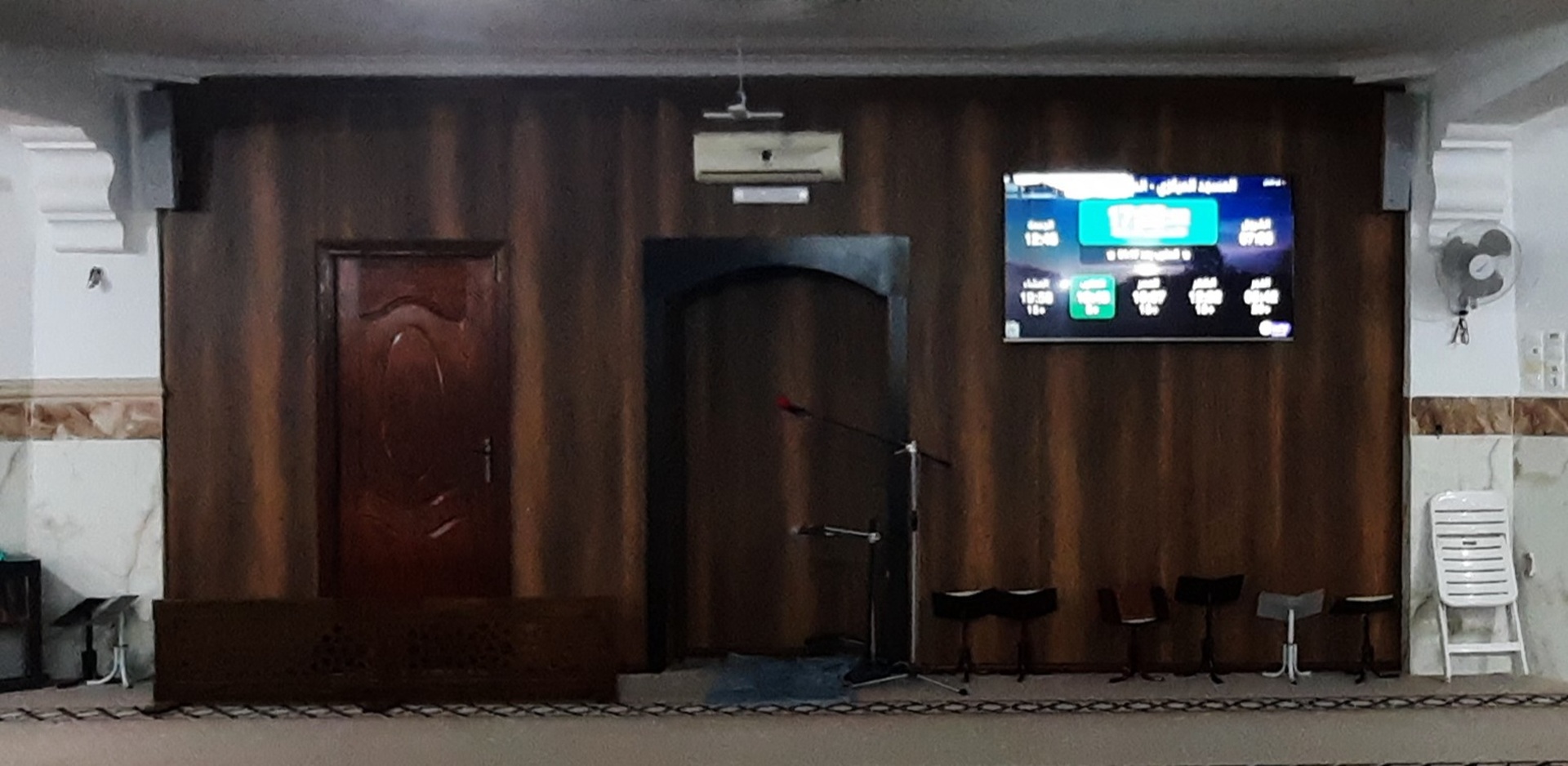 Between the athan and the iqama, and after each prayer, reminders and invocations are displayed. A Prophet's Hadith "May Allah's Prayer and Salvation Be to Him" is also displayed every 5 min