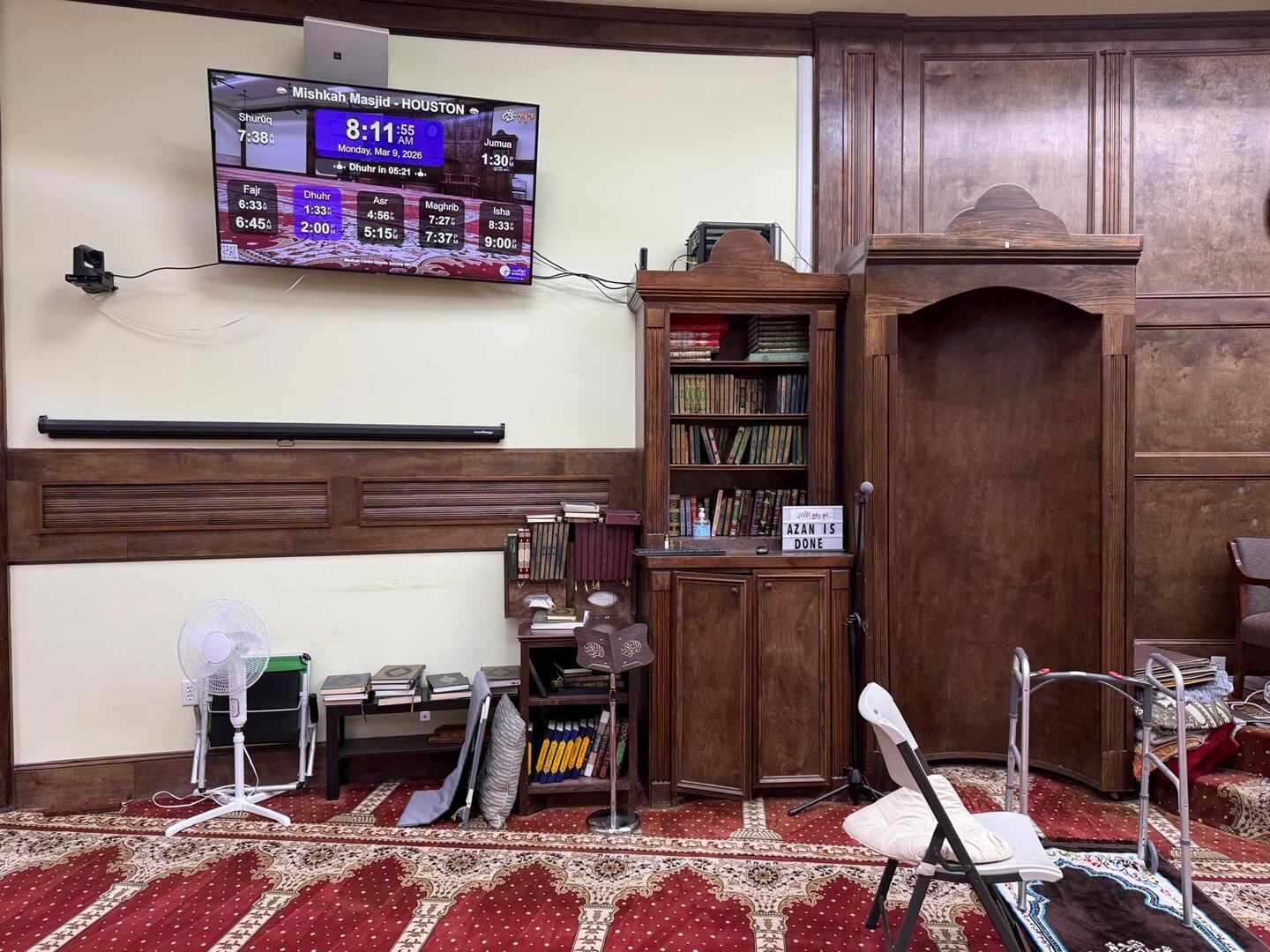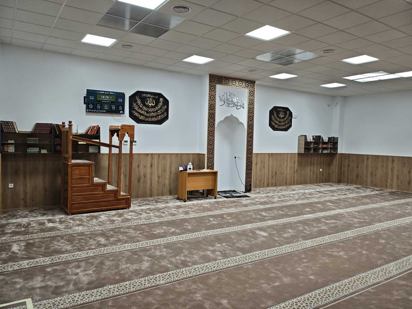Entre l'adhan et iqama, et après chaque prière, des rappels et invocations sont affichés. Un hadith du prophète "que la prière d'Allah et son salut soient sur lui" est également affiché toutes les 5 min
