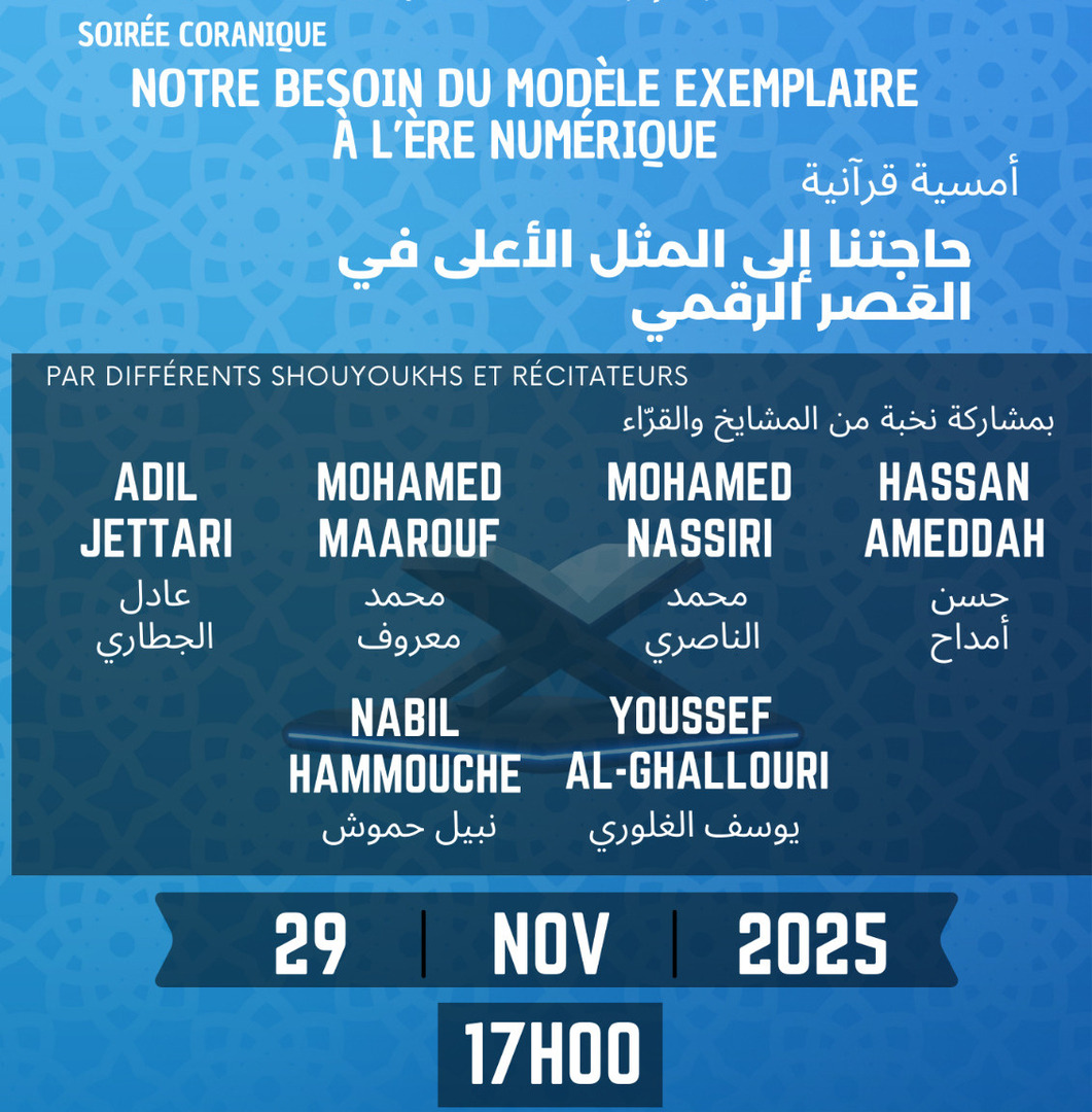 Le samedi 29/11/2025, entre les deux prières du soir (à partir de 17h00).