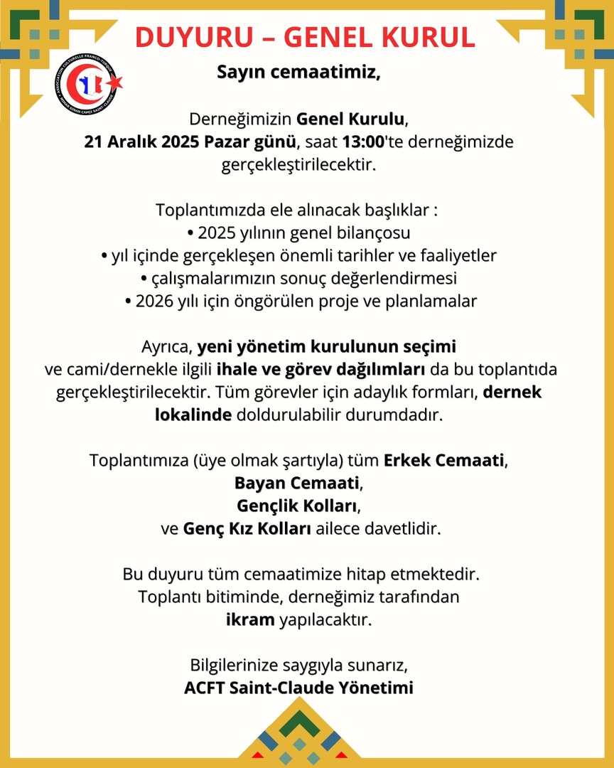 YARDIMLAŞMA - ROUBAIX CAMII Cuma namazının ardından, inşaatı devam eden Roubaix Camii için yardım toplanacaktır. Katkılarınız için şimdiden teşekkür ederiz.
