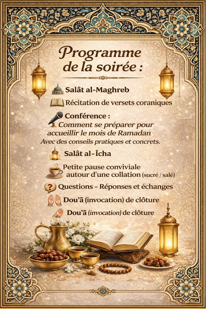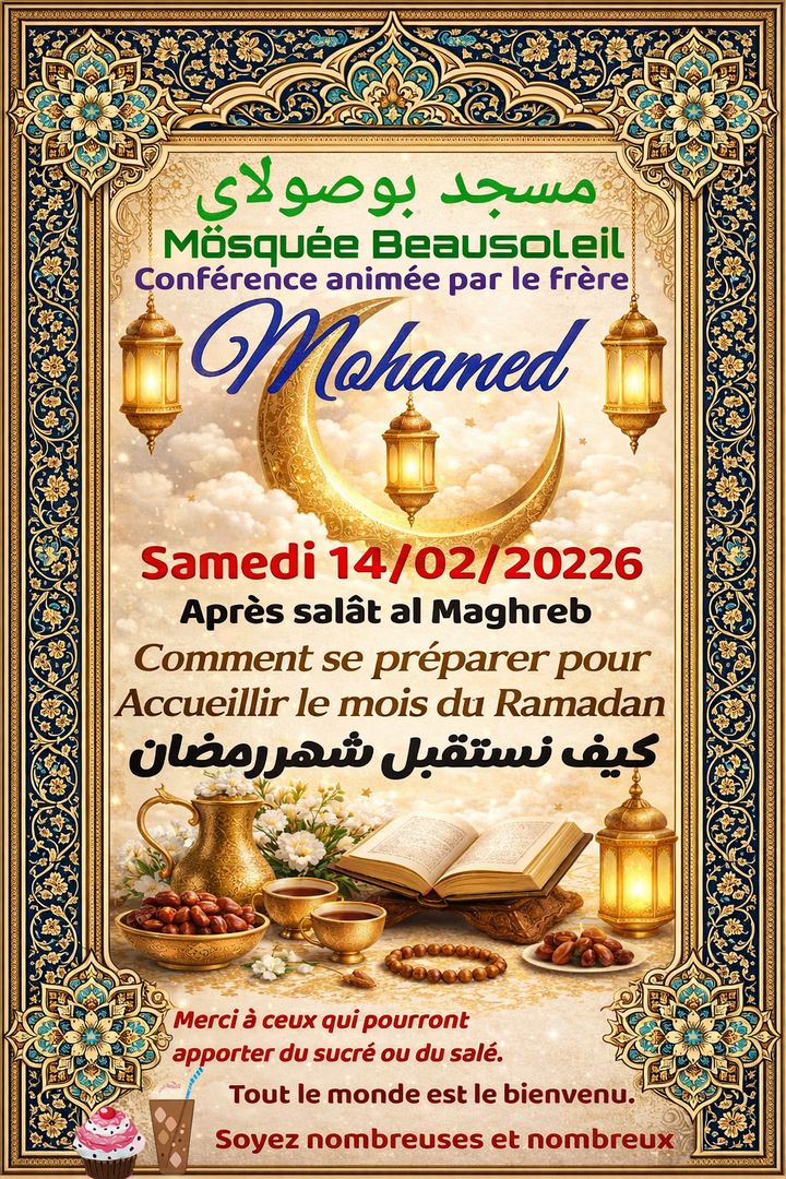 Merci aux frères et sœurs de payer la cotisation de l'année 2026 de 10 € par mois à la mosquée. Barak'Allahu fikoum.
