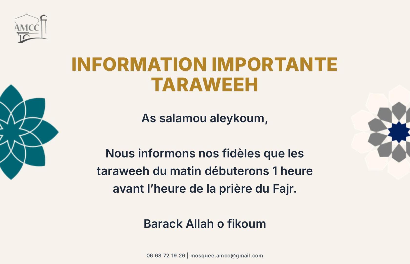 Votre mosquée vous informe