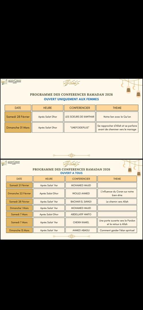 Programme conférence ramadan 2026