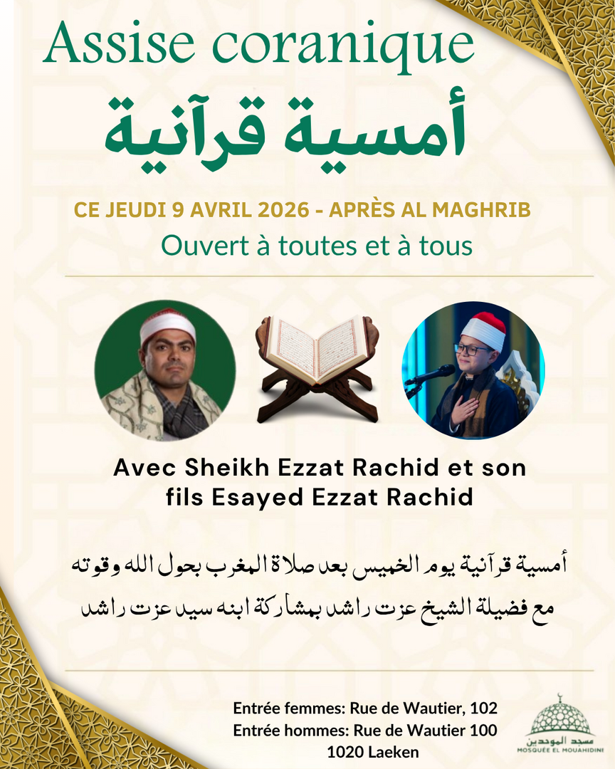 La mosquée ouvre ses portes 30 Minutes avant et ferme 30 Minutes après ouverture.