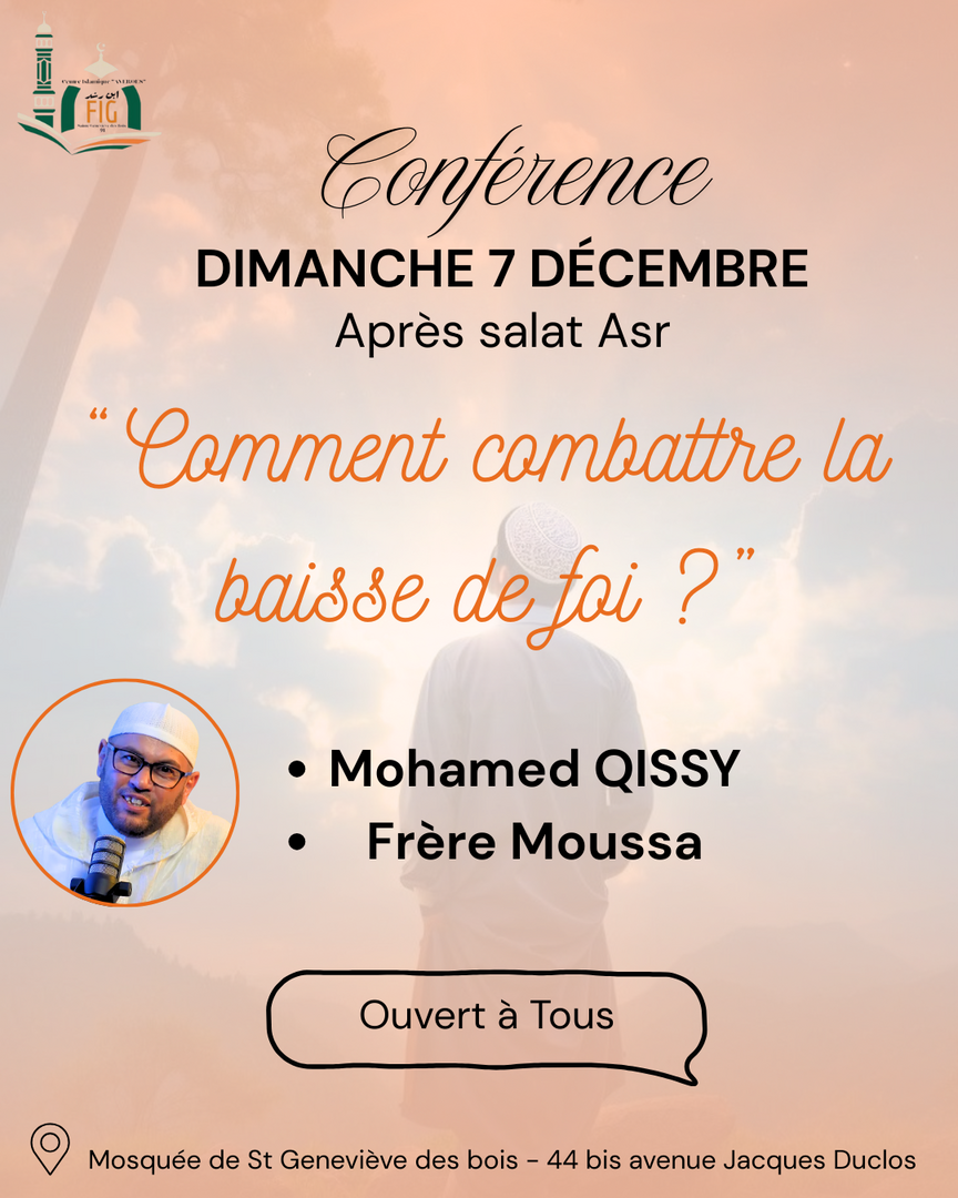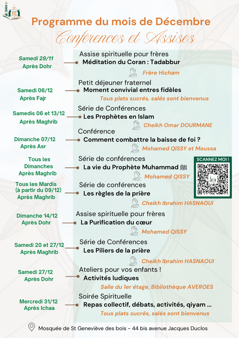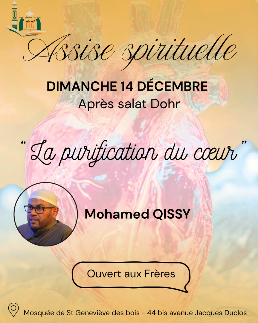 Salam aleykoum, Une assise spirituelle pour frères aura lieu ce dimanche après Dohr dans la salle du 1er étage sur le thème de "La méditation du Coran"