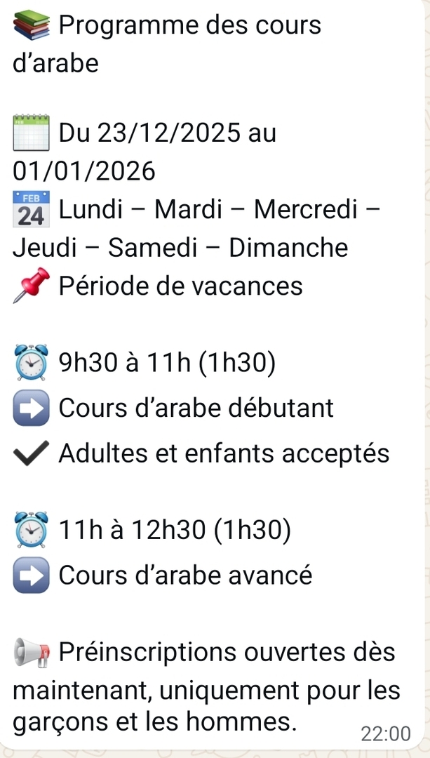 Principe de 25€/mois. Merci de faire un virement bancaire et notifier "cotisation mosquée".