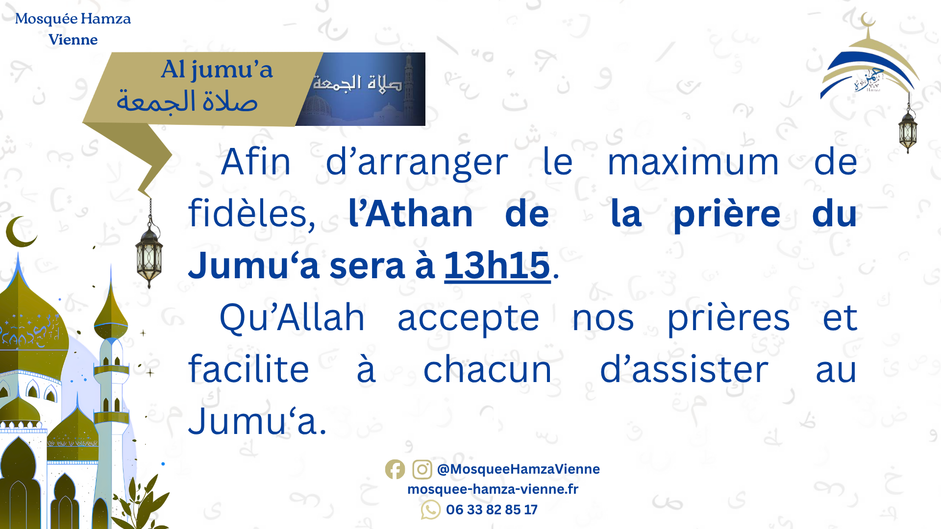 Horaires, Activités et Dons pour votre Mosquée et bien plus => www.mosquee-hamza-vienne.fr