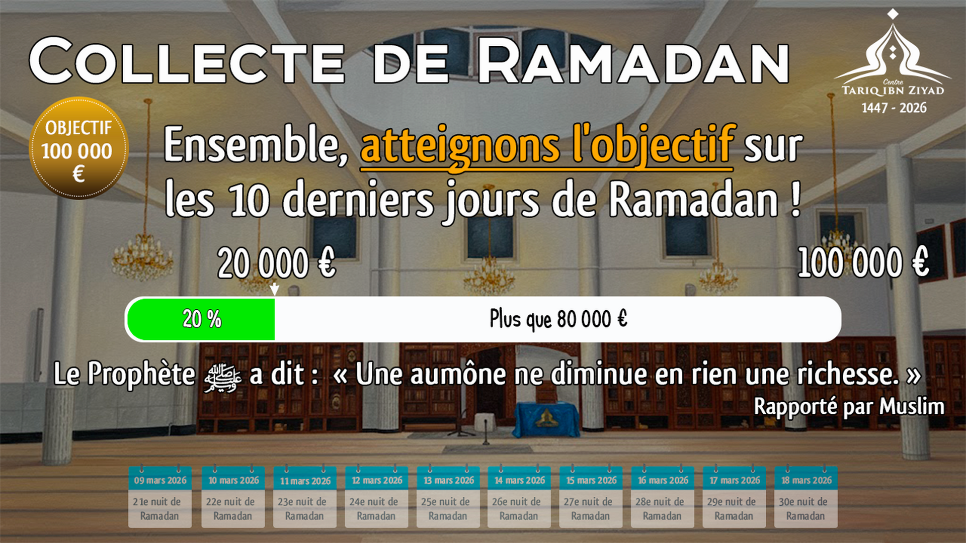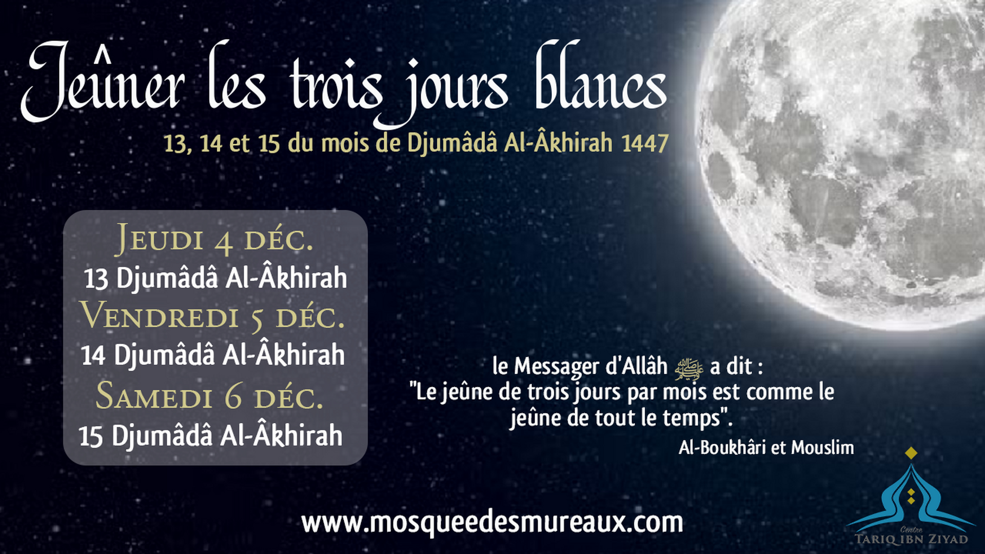 Ô Allah, Maître de cet appel parfait et de la prière que l'on va accomplir, donne à Mohammed le pouvoir d'intercéder (le Jour du Jugement) et la place d'honneur [au Paradis], et ressuscite-le dans la position louable que Tu lui as promise