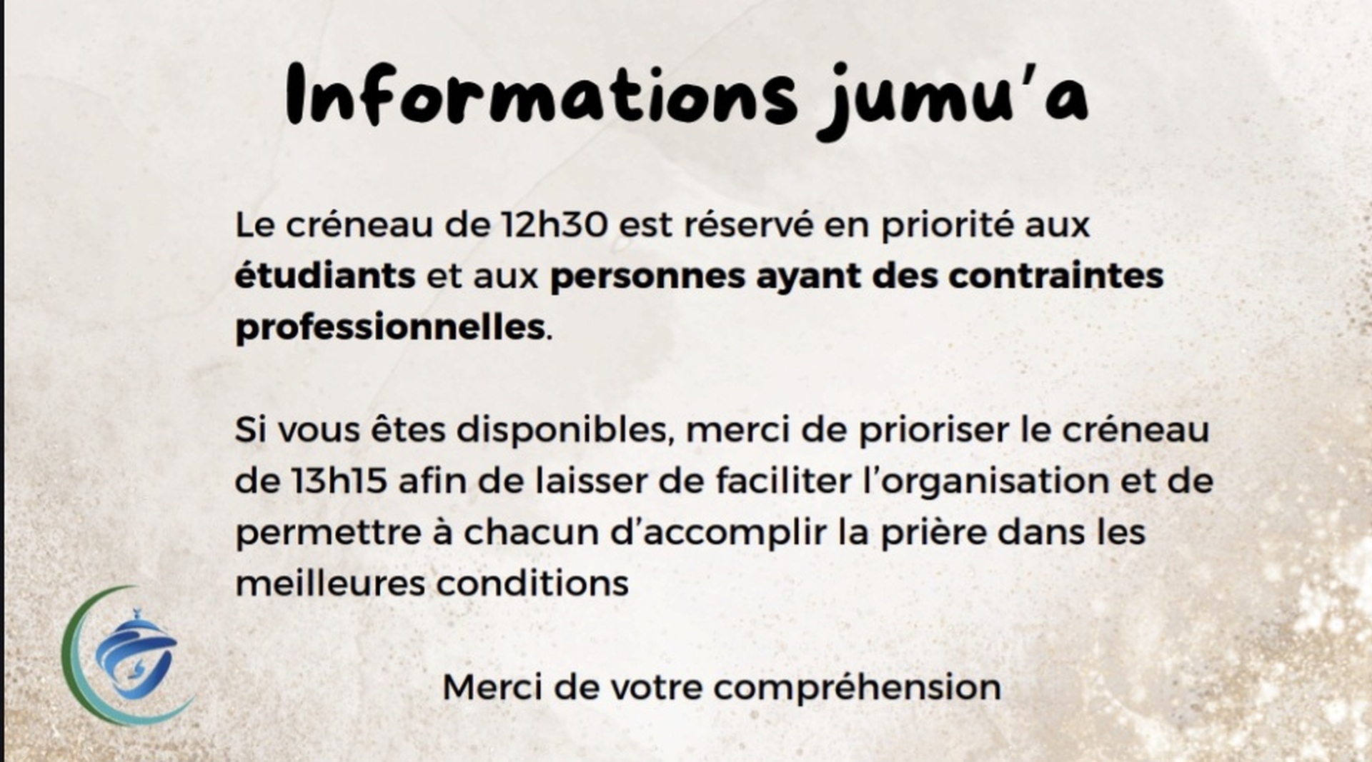 Le Prophète (que la prière d'Allah et son salut soient sur lui) a dit "Celui qui fait les ablutions parfaitement puis se rend au jumu'a puis écoute et se tait, il lui est pardonné ce qu'il y a entre ce moment et le vendredi suivant et trois jours en plus et celui qui touche des cailloux a certes fait une futilité"