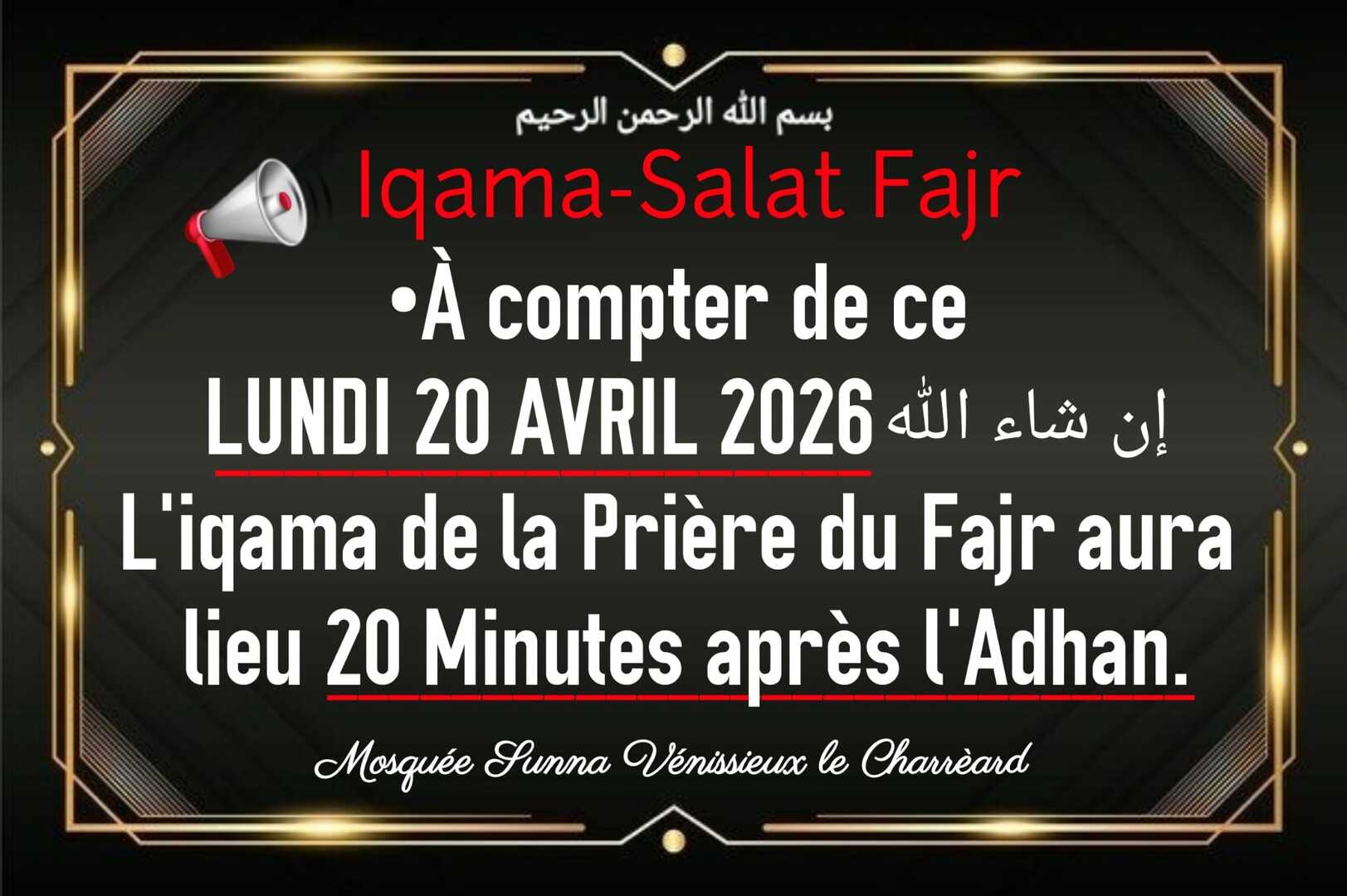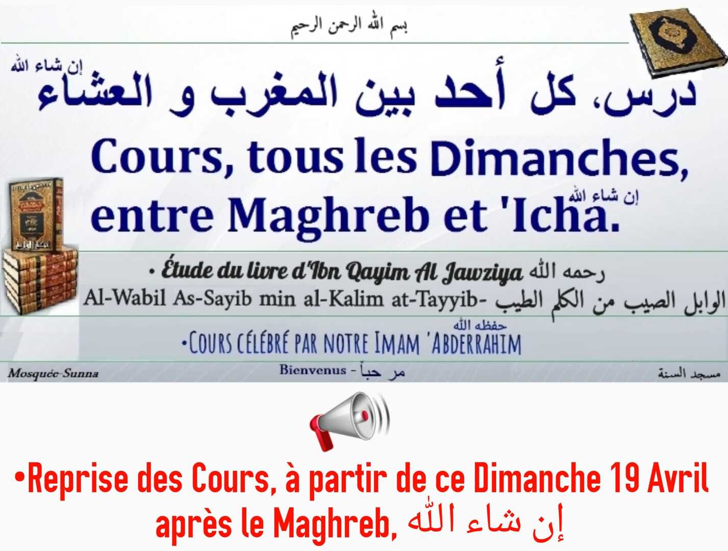 Ô Allah, Maître de cet appel parfait et de la prière que l'on va accomplir, donne à Mohammed le pouvoir d'intercéder (le Jour du Jugement) et la place d'honneur [au Paradis], et ressuscite-le dans la position louable que Tu lui as promise