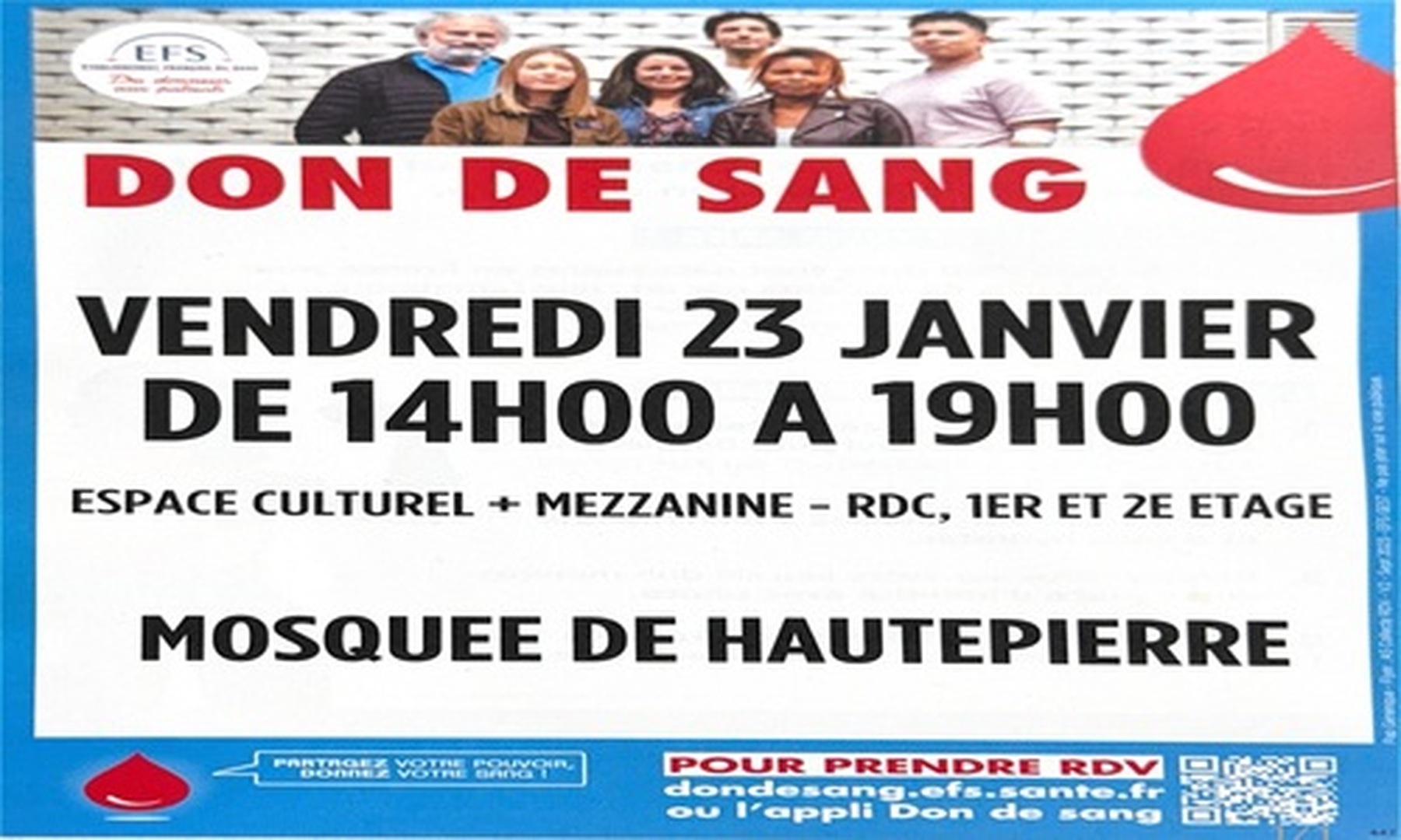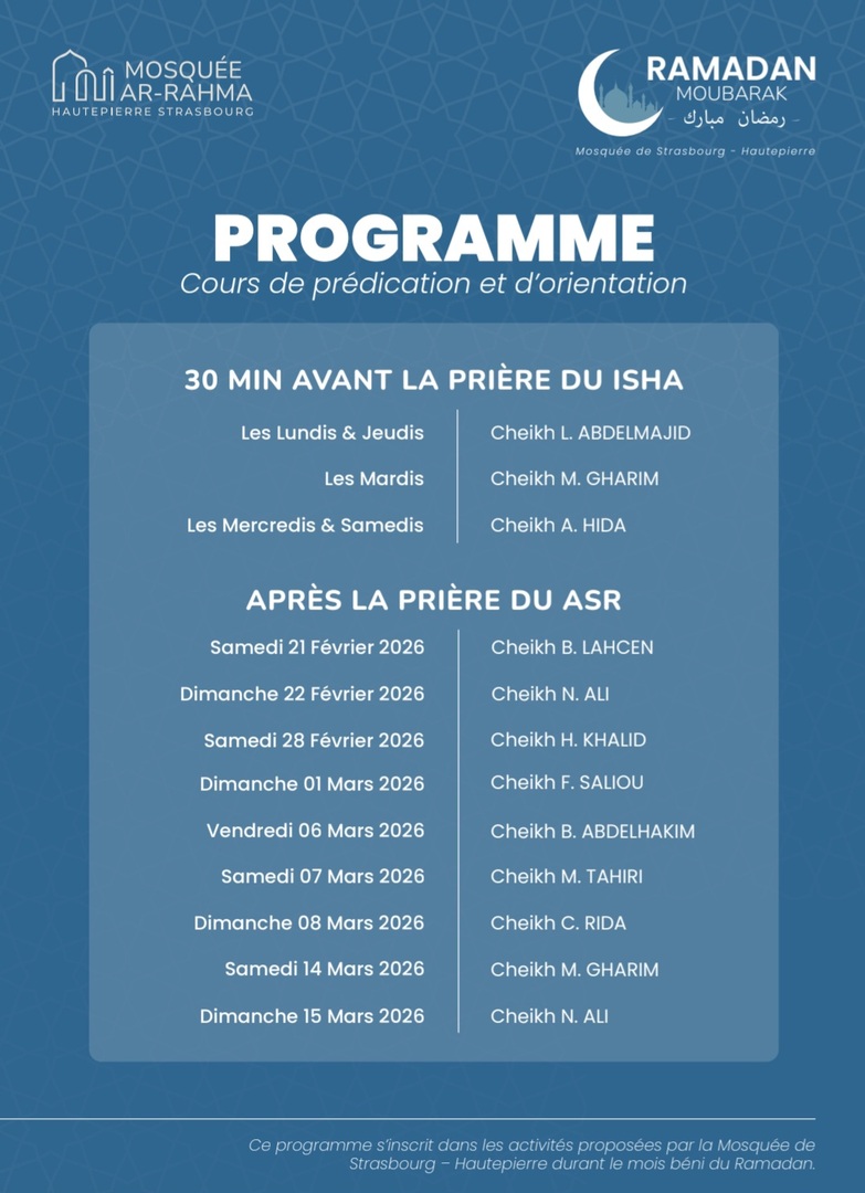La mosquée est ouverte 20 min avant et après chaque prière