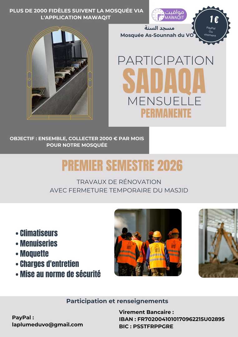 Récolte la semaine prochaine pour le Masjid, Vendredi 12 Décembre Inch'ALLAH, après Salat Al Joumou'a.