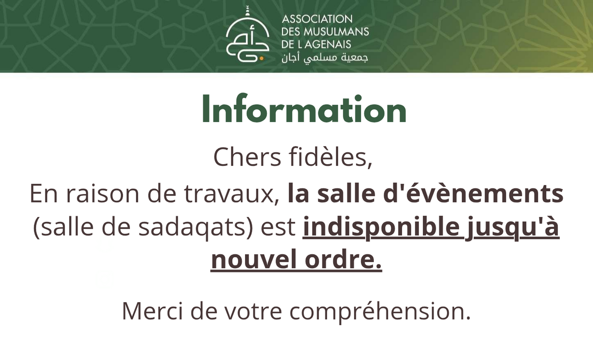 Votre mosquée vous informe
