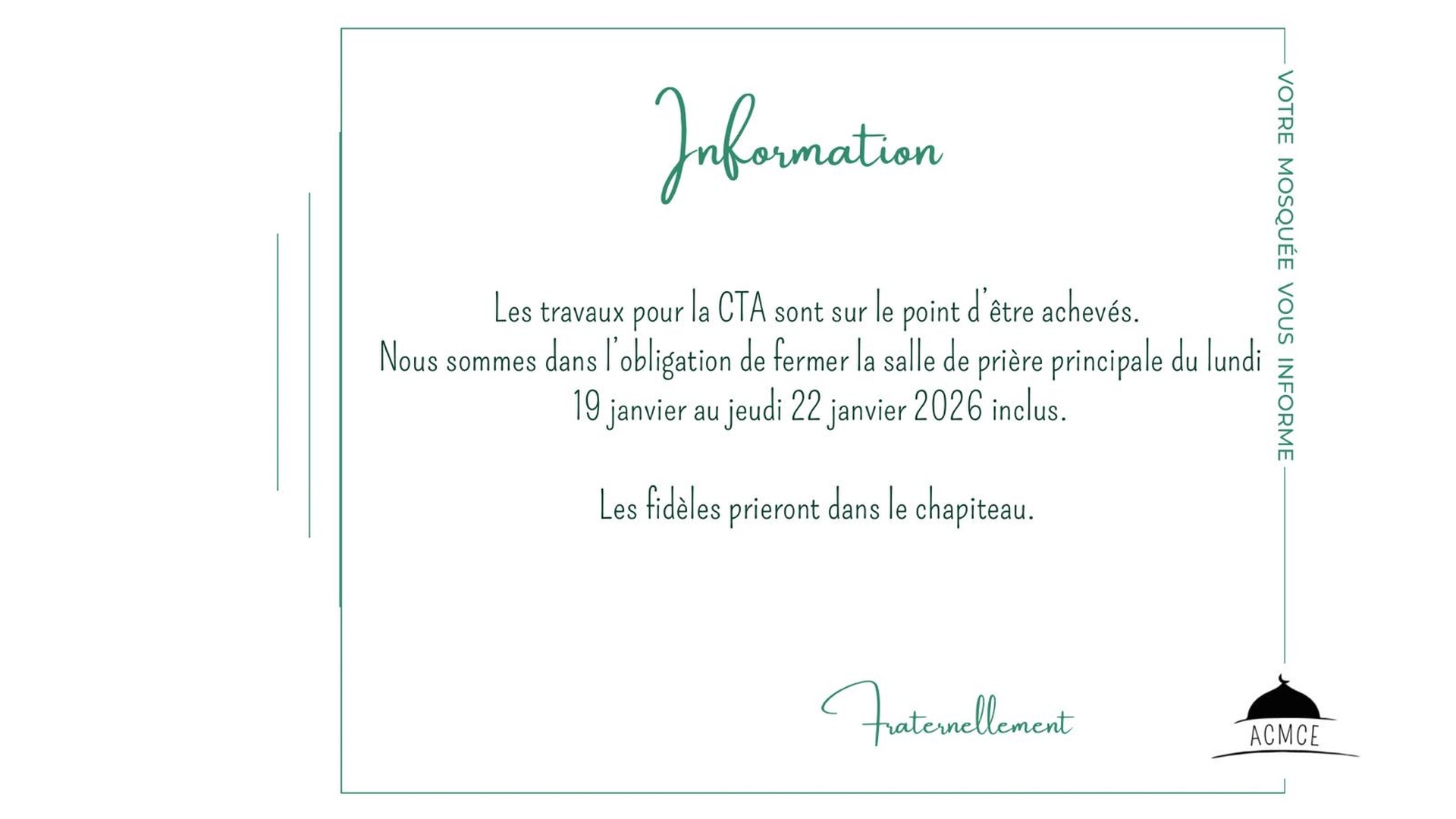 Votre mosquée vous informe