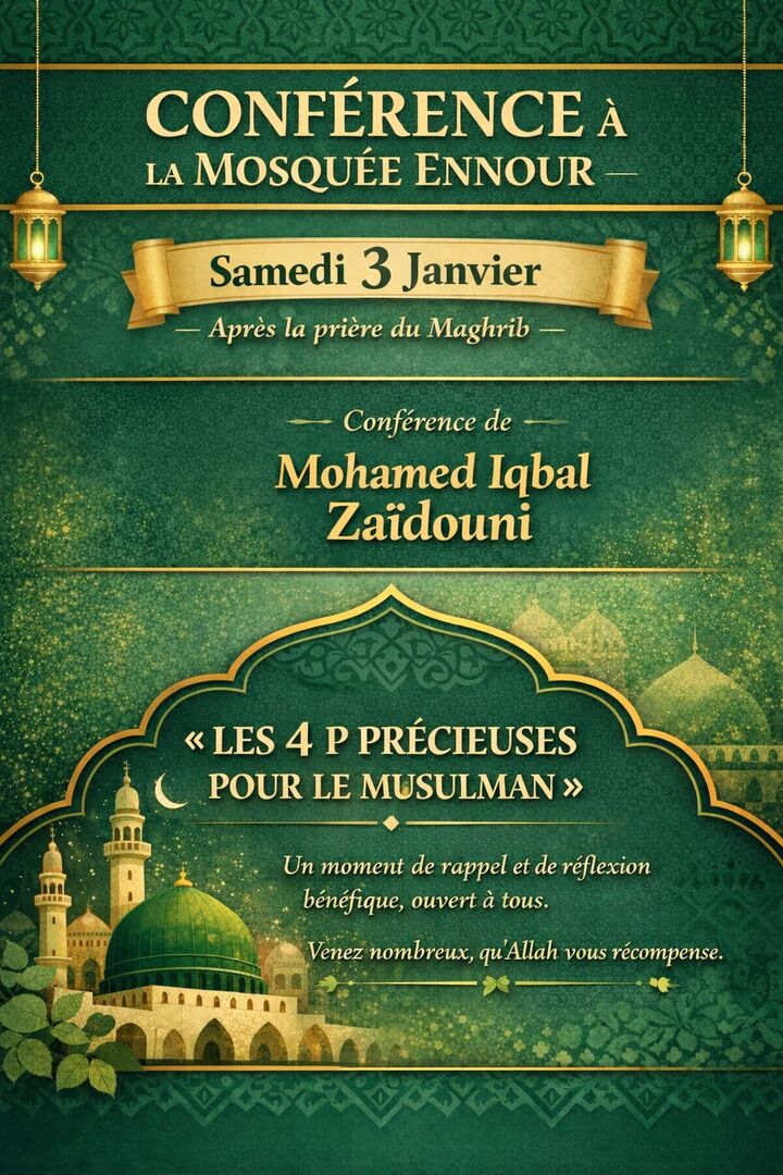 La mosquée ouvre ses portes 15 minutes avant la prière, et femme 15 minutes après la prière .