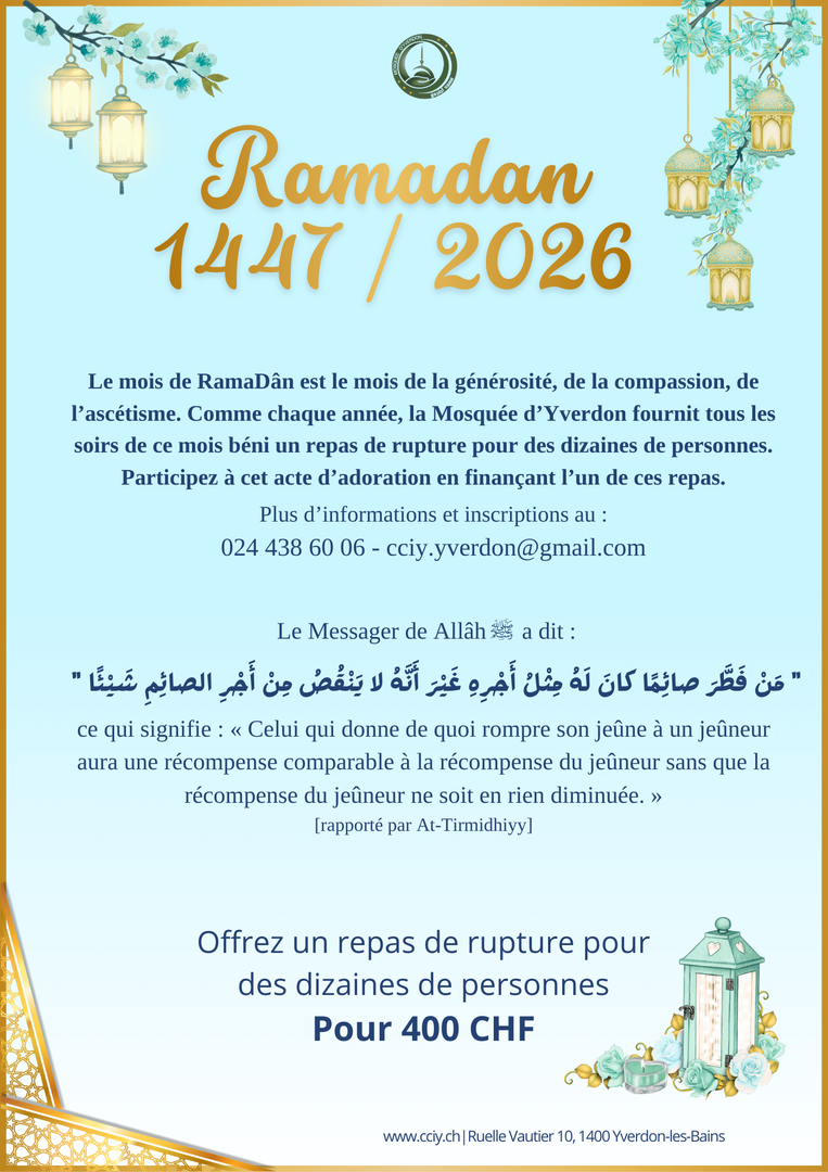 La Mosquée a déménagé et se trouve à la Ruelle Vautier 10, 1400 Yverdon-les-Bains.