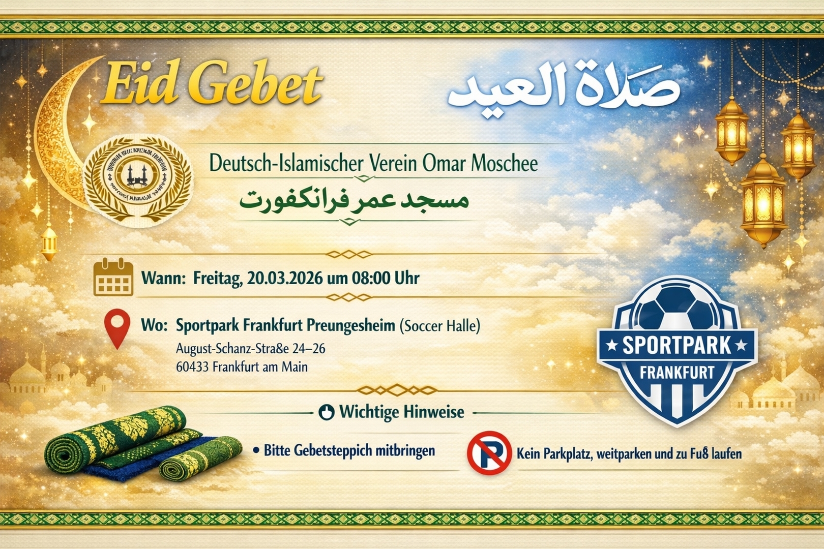 Das Mittagsgebet (Ṣalāt az-Ẓuhr) findet jeden Samstag und Sonntag in der Winterzeit während der Schulzeit um 13:00 Uhr statt.